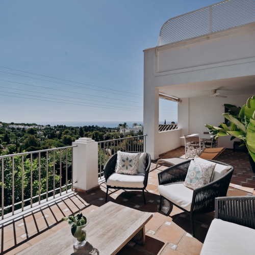 Stunning Andalucian style townhouse located on the famous golden mile in Marbella. A wonderfull designed architecture with Mediterranean taste, surrounded by lush tropical gardens and polos in areas of large ponds make this location a great place to live. The Master bedroom coounts with a dressing room and bathroom with Jacuzzi, separate shower, terrace and balcones. The townhouses also include with a superb roof with solarium and built in barbeche, from were fantastic sea and mountain views can be enjoyed.