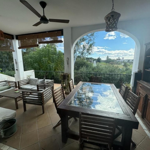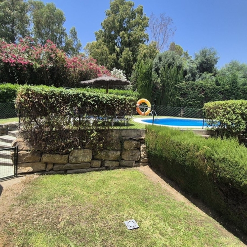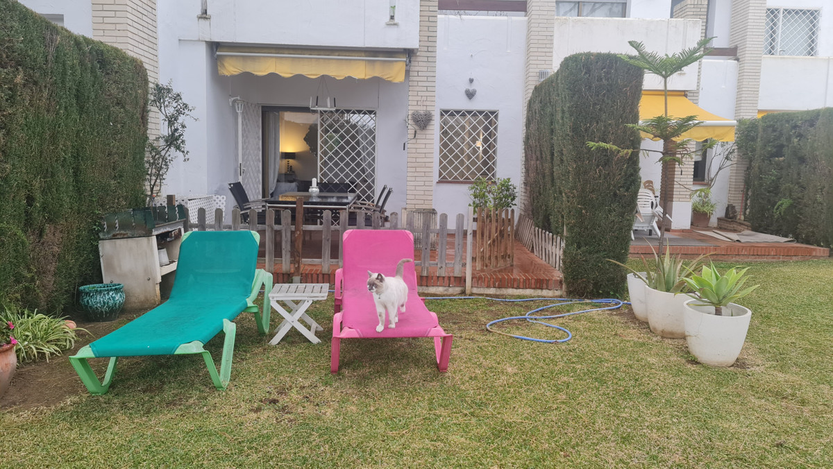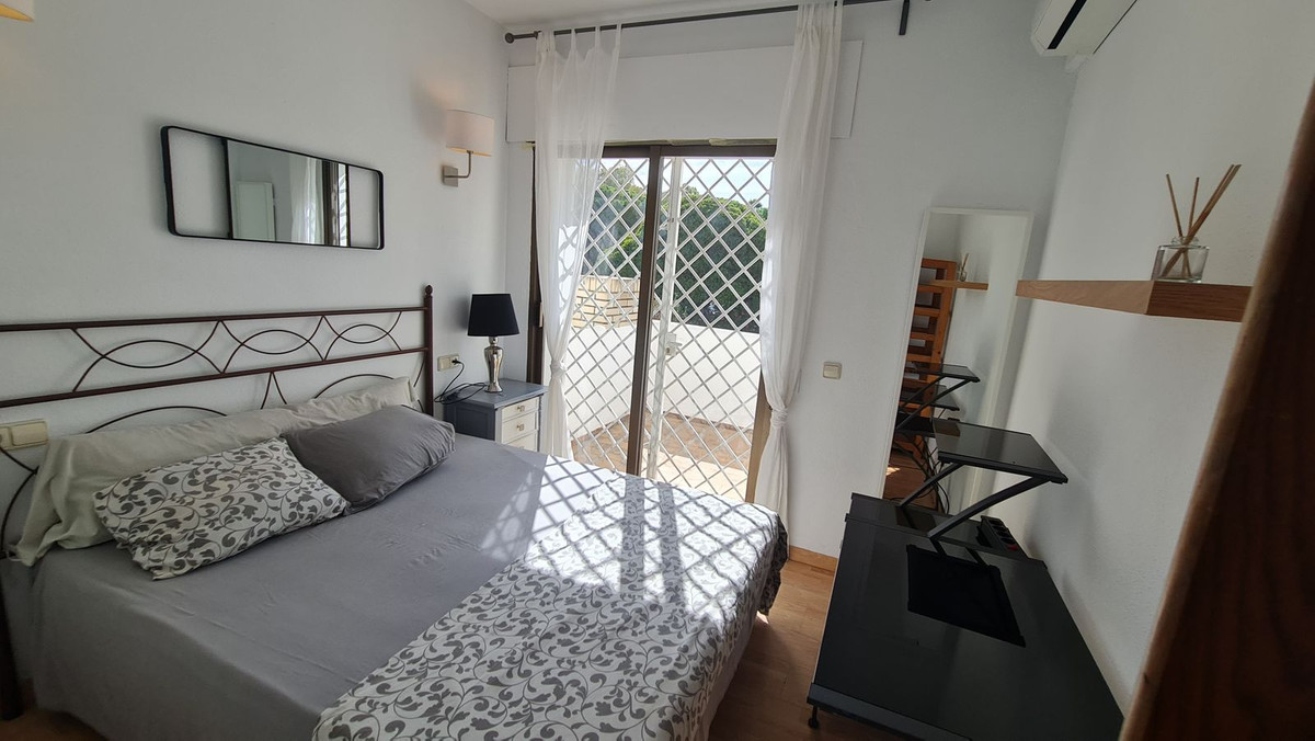 Surrounded by 12.000 m2 of gardens for only 12 properties and in front of las Brisas Golf. This lovely , 3 bedrooms duplex with 2 bahrooms and guess toilet .Offers you communal pool and gardens, to enjoy "the golf-valley way of life". Air cond all the rooms South and west orientated.Electric Windows Fireplace . .Parking inside of the gated complex. Cousy place to live very ,quiet and walking distance to las Brisas golf corse and los Naranjos Golf corse, close to Puerto Banus.