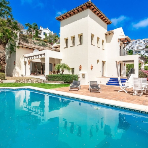 This stunning Mediterranean villa is situated within one of the most exclusive private estates in the Marbella area. Los Arqueros Golf is a mature gated community with 24 hour security. It has it's own 18 hole golf course (designed by Seve Ballesteros), an impressive club house with an excellent restaurant, tennis courts and gym. The club house, driving range and all sports facilities are within walking distance of the property.