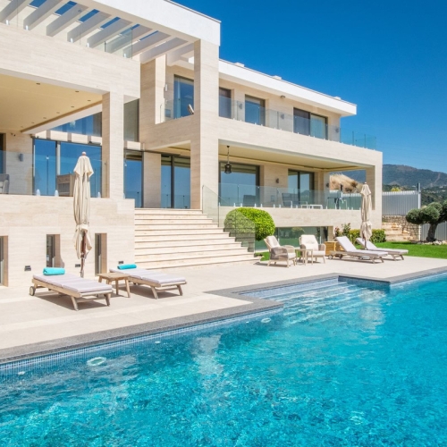 Set within the prestigious La Zagaleta development, internationally renowned for its first-class facilities and spectacular situation, is found this haven of peace and tranquillity. The villa benefits from stunning views of the sea and natural surrounding, the Serrania de Ronda mountains and stretching towards the coast. The villa can be reached through the south gate. The property features covered and uncovered south-facing terraces with outdoor BBQ and sink, a large private garden with pool. The main accommodation is spread over one level, and comprises an entrance hall, flowing through to a large living/dining room, with feature fireplace and vaulted ceiling, with doors to the terraces and garden. Elegant kitchen, with breakfast table, guest cloakroom. In the west wing is found the master suite, with dressing and luxurious en suite bathroom, as well as two further bedroom suites, one currently used as an office, 2 further ensuite bedrooms complete the property. The villa, features marble and terracotta floors, under floor heating, air conditioning hot and cold and alarm system, including video entry phone. Large storage space and boiler room on lower ground floor with 250 m2 open space to be built out at owners specifications.