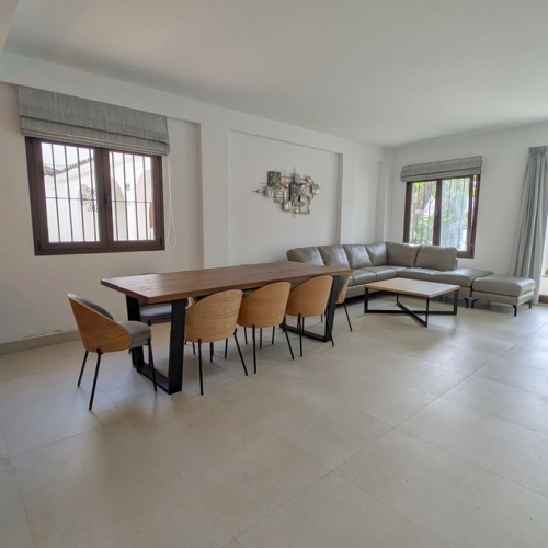 Stunning 4 bedroom duplex apartment in a beachfront urbanisation just a few steps from the heart of Puerto Banus. The apartment is located directly to the beach, with stunning panoramic sea and beach views. The property has 4 ensuite bedrooms with fitted wardrobes. There is a spacious living area with a dining area and partially open kitchen. The kitchen is completely equipped. The gated development has 24h security, underground parking, beautiful communal gardens and swimming pool, as well as direct access to the promenade and beach.