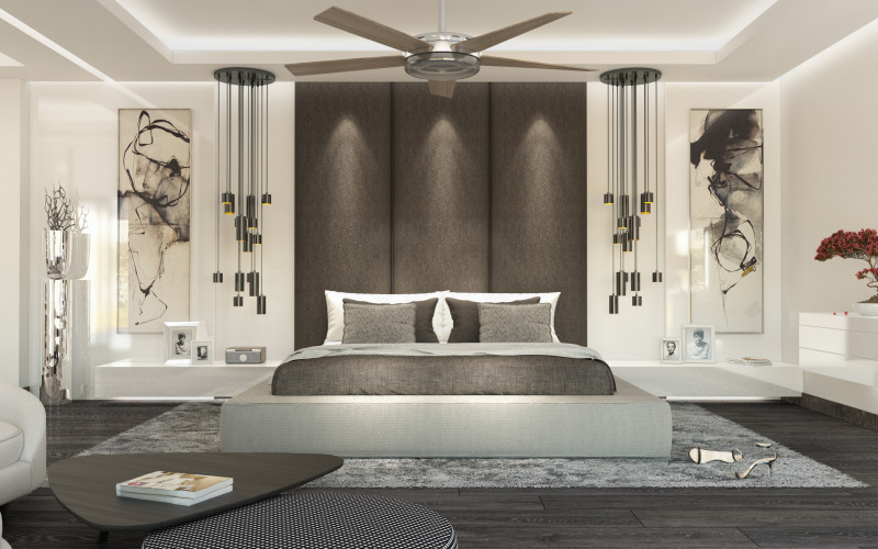 Master bedroom suite with luxury en suite bathroom and terrace access over the pool towards the sea and golf. Two further bedrooms both with en suite bathrooms. Gallery hallway overlooking the lounge area below.
