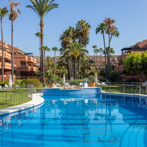 Excellent ground floor apartment in a prestigious development in Puerto Banús, Costa del Sol. South facing with a small private garden.