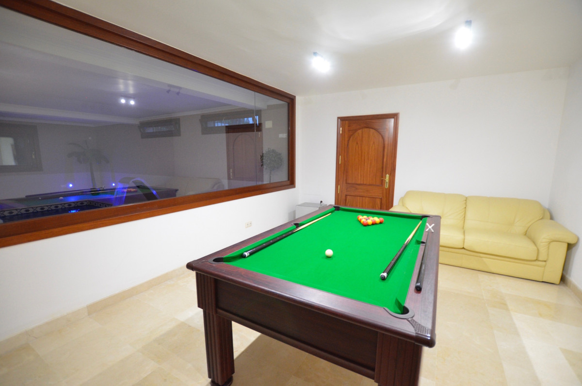 The basement level of this magnificent villa offers a host of luxurious amenities, including a heated indoor pool, a games room, a wine cellar, and cinema room.