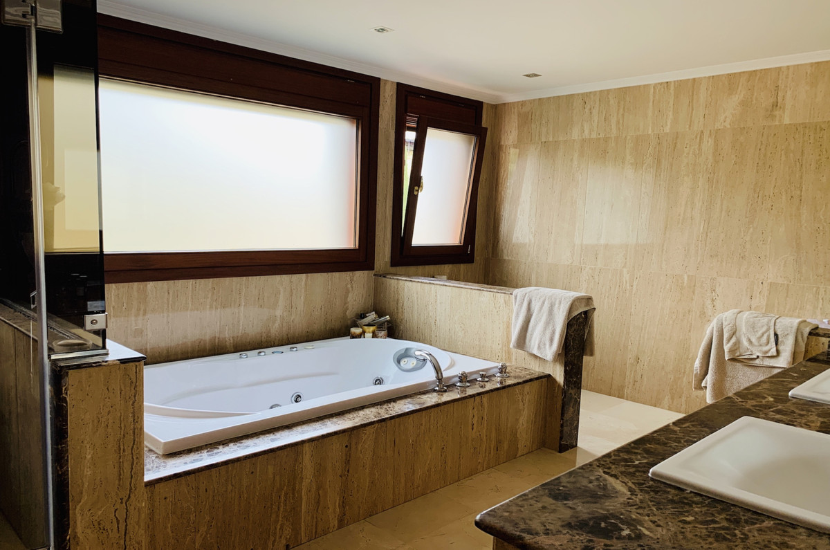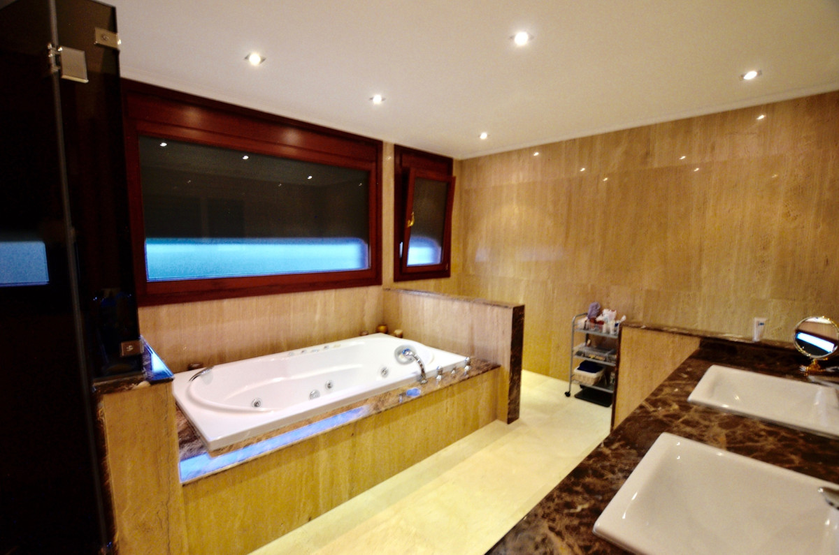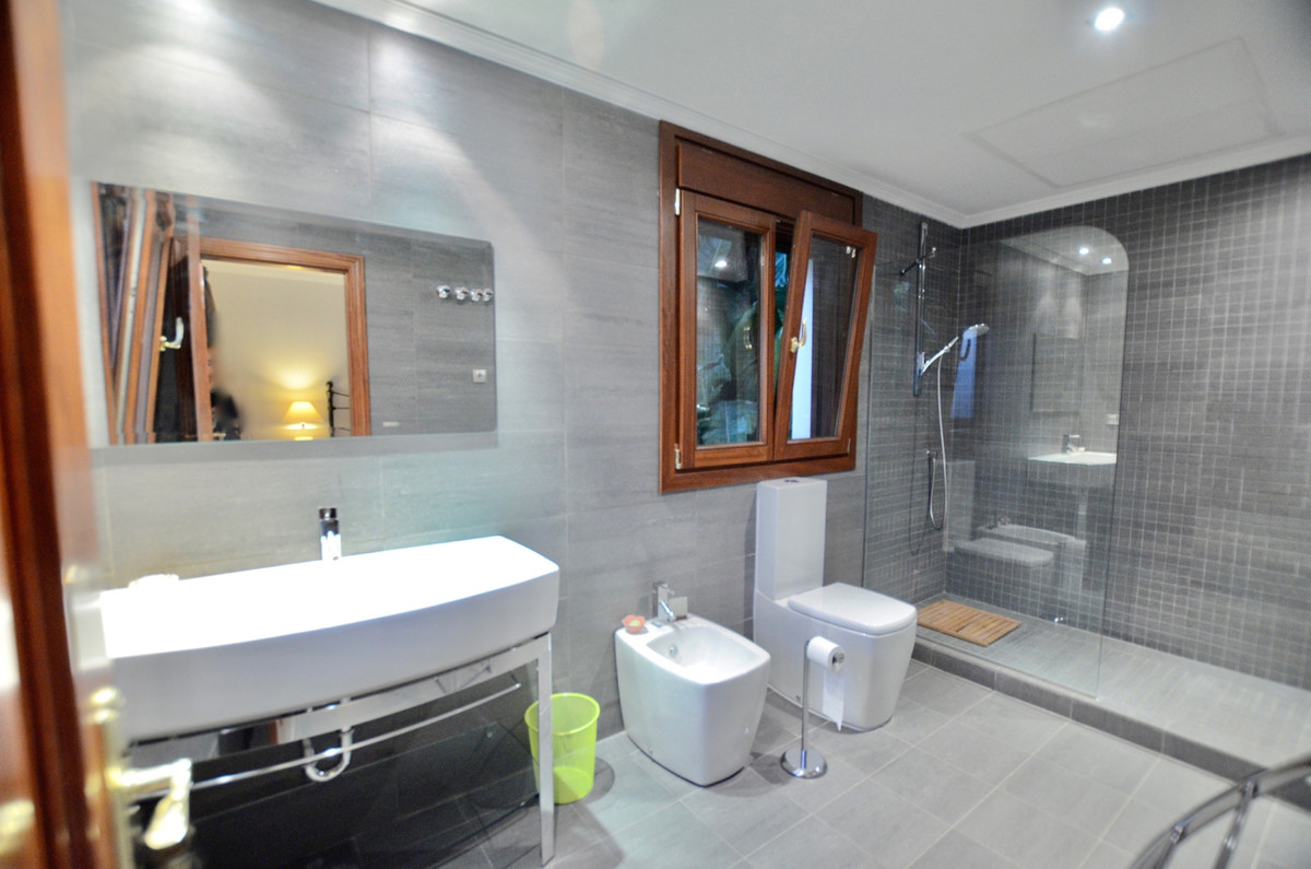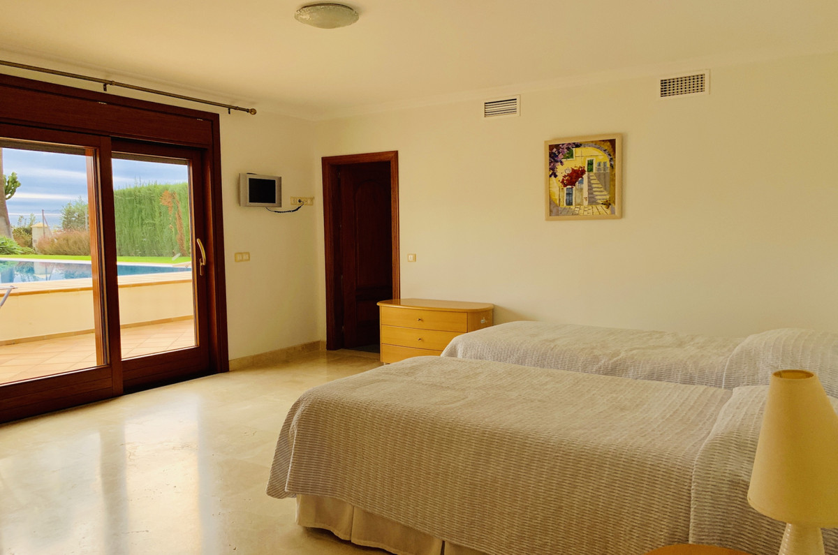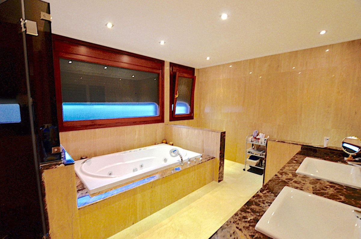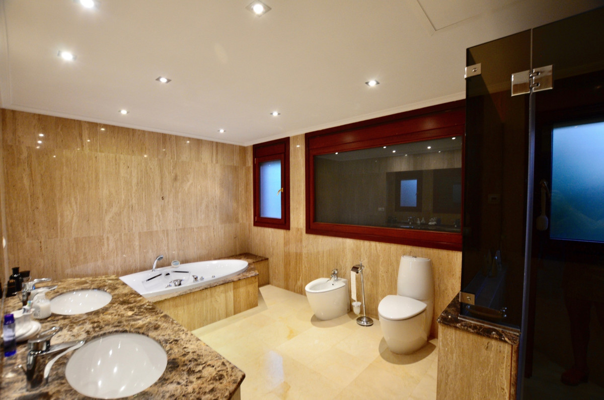 Moving to the first floor, you'll discover two generously sized master bedrooms, each boasting a walk-in wardrobe and a spacious en-suite bathroom. These bedrooms open up to a massive terrace that embraces the entire floor, allowing you to bask in the breathtaking views and immerse yourself in the tranquil surroundings.