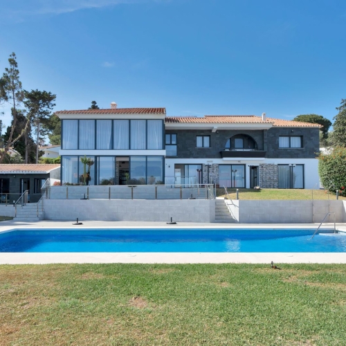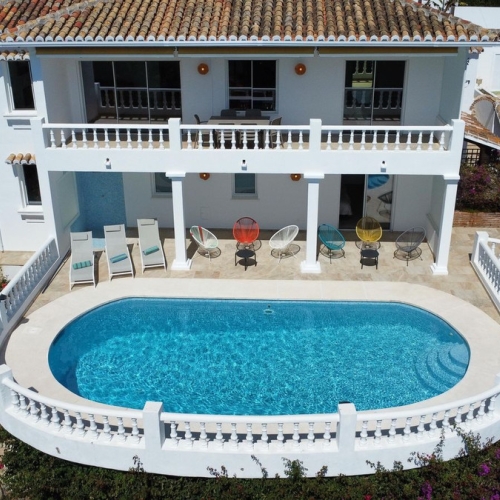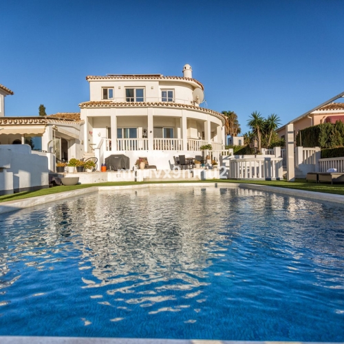 AN IMPRESSIVE, UNIQUE AND ORIGINAL VILLA WHICH IS TOTALLY FRONT-LINE BEACH IN EL CHAPARRAL WITH PRIVATE DIRECT ACCESS TO THE BEACH. IT HAS BEEN DESIGNED TO REPLICATE A BOAT WITH THE RESULTING SENSATION THAT YOU ARE LITERALLY NAVIGATING THE OCEAN FROM ANY TERRACE OR WHEN LOOKING OUT TO SEA. IT CONSISTS OF 6 BEDROOMS EACH WITH ITS OWN EN-SUITE BATHROOM AND INDIVIDUAL DECOR. THE MASTER SUITE IS ON THE SECOND FLOOR AND HAS A HUGE PRIVATE TERRACE. SOME OF THE MANY FEATURES ARE: HEATED POOL, UNDER FLOOR HEATING, CENTRALISED AIR CONDITIONING, FIREPLACE, HIGH QUALITY KITCHEN, BRAZILIAN MARBLE FLOORING, PARKING FOR AT LEAST 12 CARS, GARAGE AND WORKSHOP. THE GUEST APARTMENT IS ACTUALLY A REAL BOAT WITH TWO BEDS, SMALL KITCHEN AND BATHROOM. SOMETHING TRULY ORIGINAL. EVERY DETAIL OF THE HOUSE HAS BEEN CAREFULLY CHOSEN TO REFLECT AND REMIND YOU OF THE MARINE WORLD. THERE IS NO OTHER VILLA LIKE THIS ON THE COSTA DEL SOL FOR IT´S INDIVIDUALITY AND AMAZING SENSE OF STYLE!