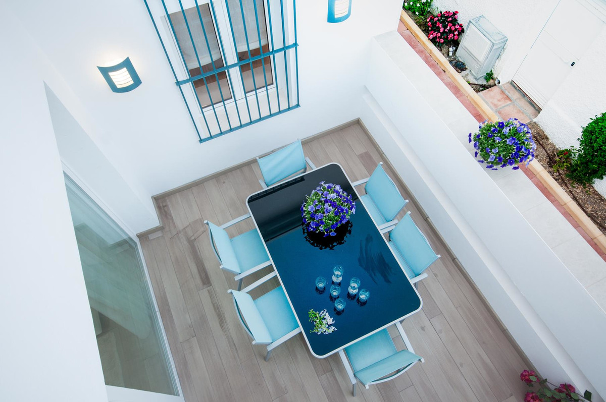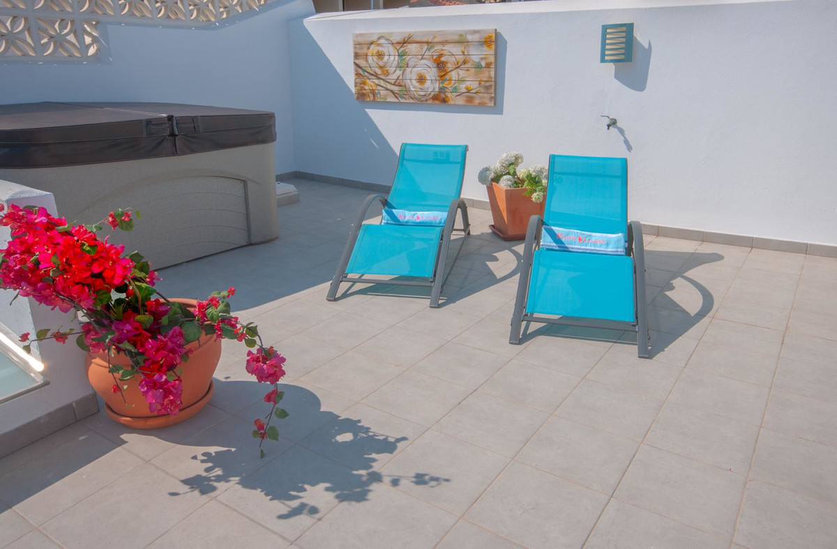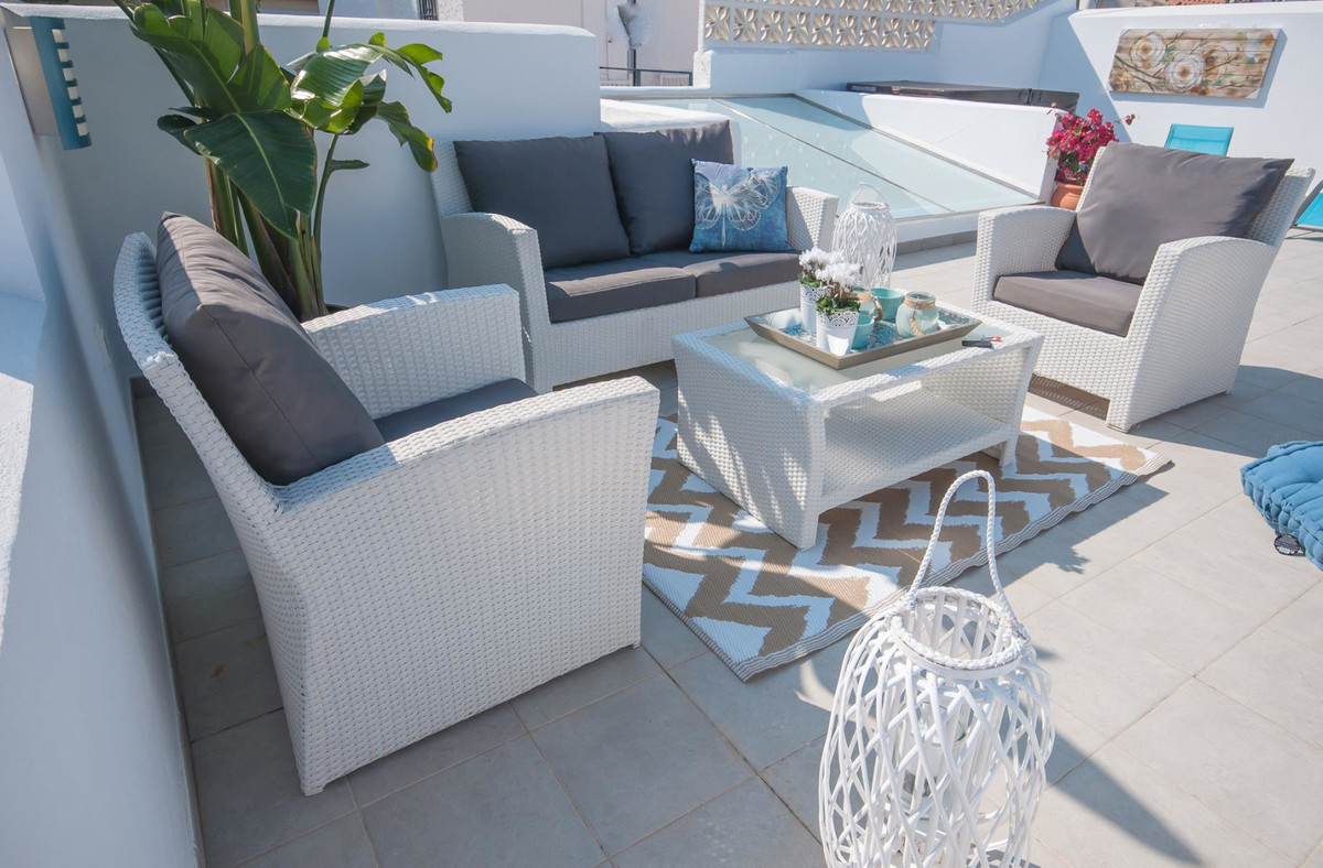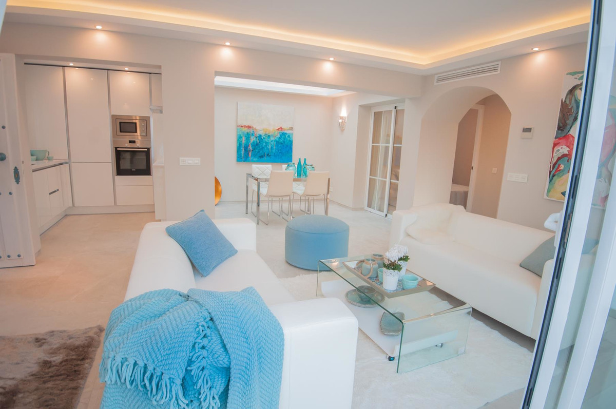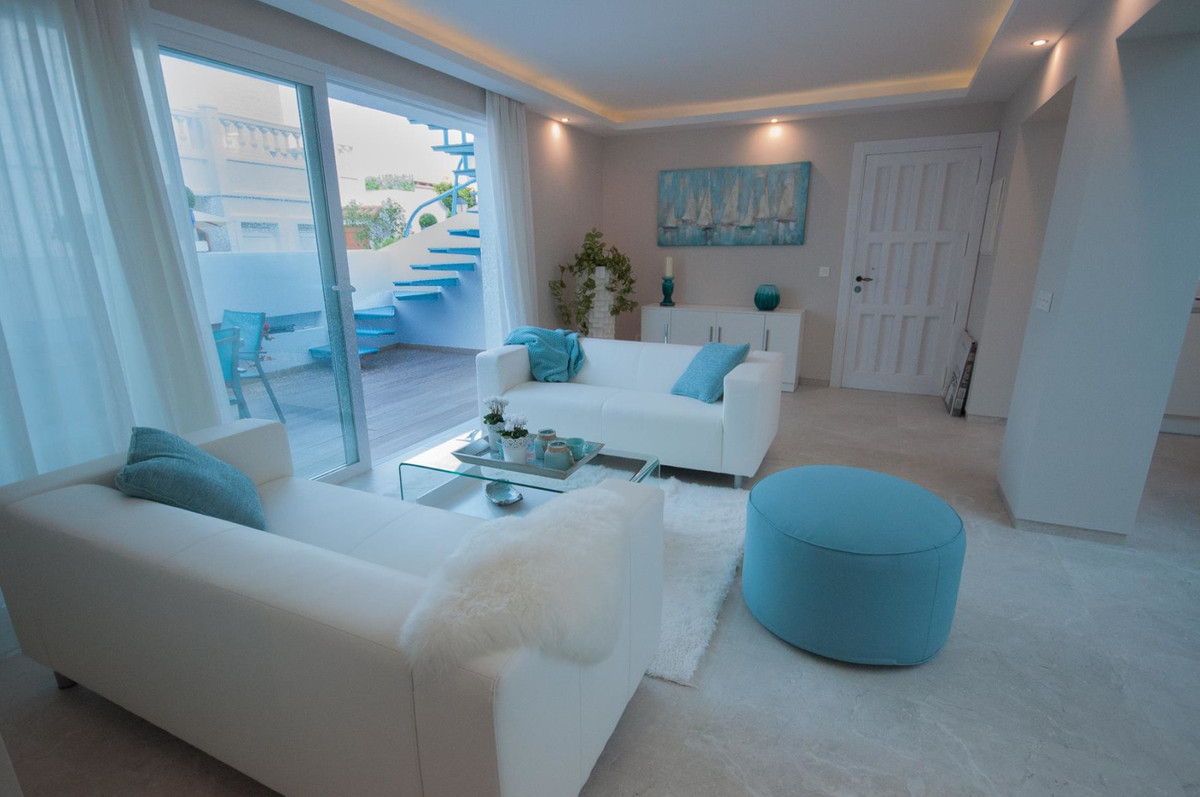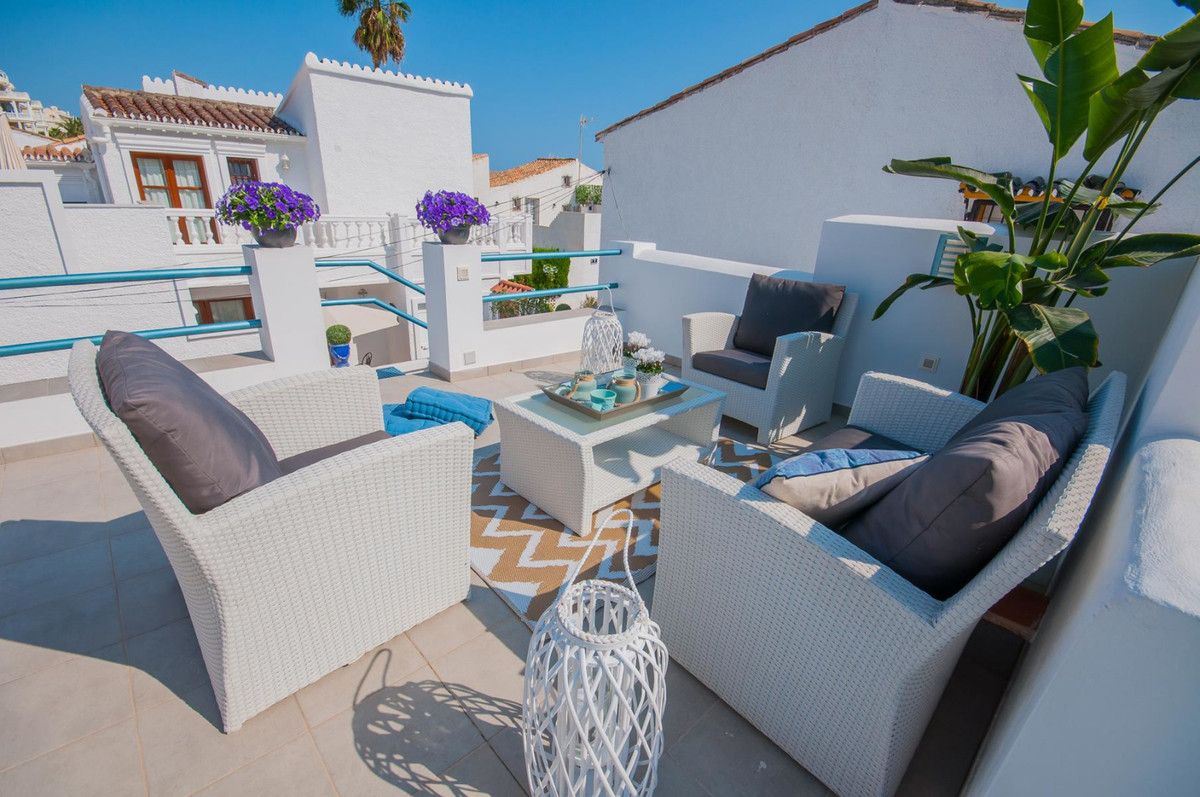 Beautiful townhouse by the sea, completely renovated and redecorated with 2 bedrooms and 2 bathrooms located in the urbanization El Pirata, in Playa Bella, Estepona. The tastefully furnished living room has a dining area and an integrated kitchen with top brand appliances. There is a staircase to access a large and sunny terrace of 30m2 with all the necessary to relax, sunbathe, etc. Including a magnificent jacuzzi. All furniture is included in the price. It is located within the urbanization and only 20 meters from the beach. A promenade in front of the urbanization connects with several beach bars and restaurants and offers an area to walk or practice unrivaled running, in a few months will be connected by this promeade with Estepona. You have to see it, it's gorgeous