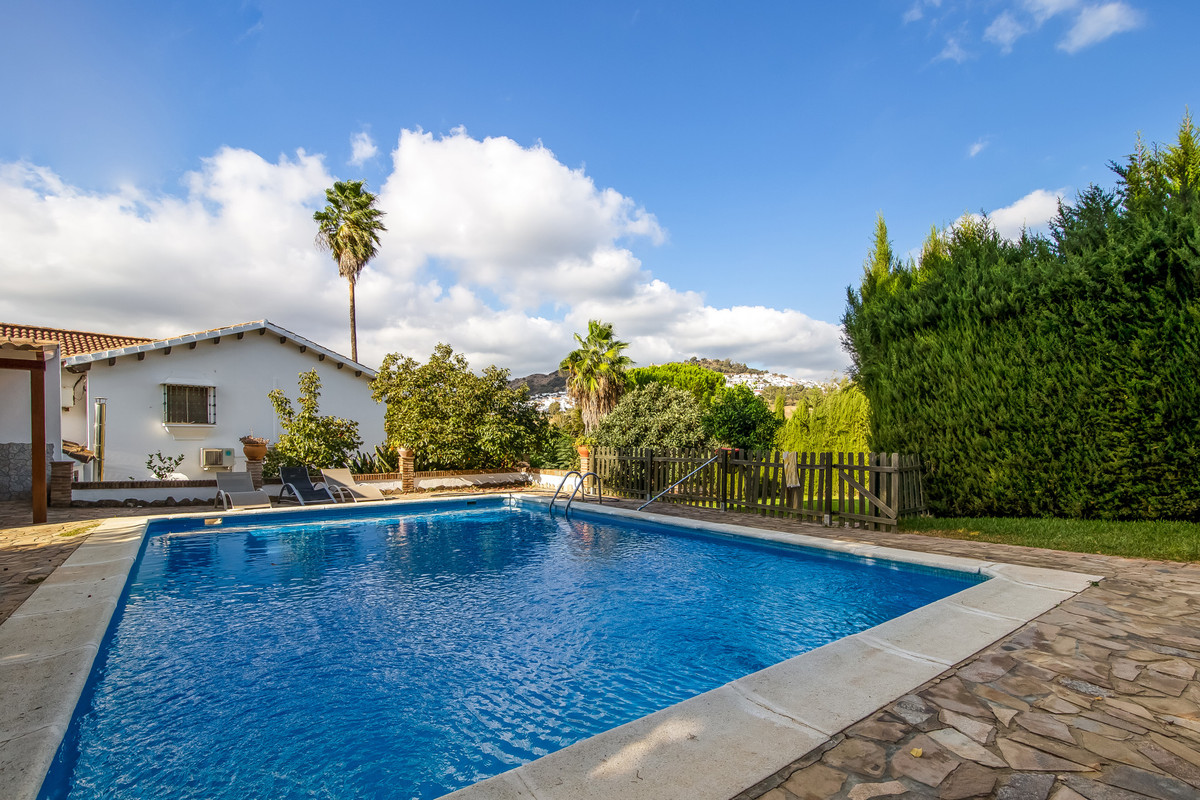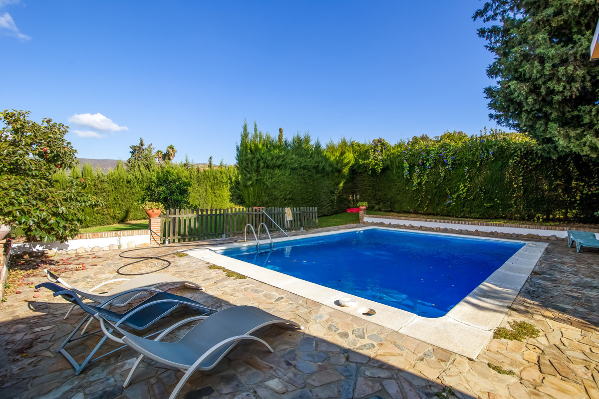 Den vestlige side af grunden består af en swimmingpool med opholdsområde med spektakulær udsigt over den gamle bydel i Jimena. Ved siden af swimmingpoolen er der et bredt græsplæneområde efterfulgt af en lille frugthave med frugttræer. Grunden har også en garage med ekstra badeværelse, et lille lagerhus og et lille hønsehus.