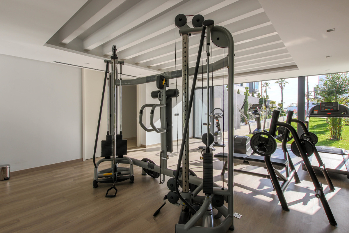 Modern and luxurious townhouse with 4 bedrooms brand new on the beachfront on the New Golden Mile of Estepona, being only twenty minutes from Puerto Banús and Marbella. The community has beautiful tropical gardens, swimming area, with a fifty-meter Olympic pool, and a spa circuit with sauna and Turkish bath. The house has a private roof terrace with fantastic sea views, jacuzzi and barbecue area, large living room with fireplace, fully equipped kitchen. It is equipped with underfloor heating, air conditioning hot / cold, security shutters and double glazing.