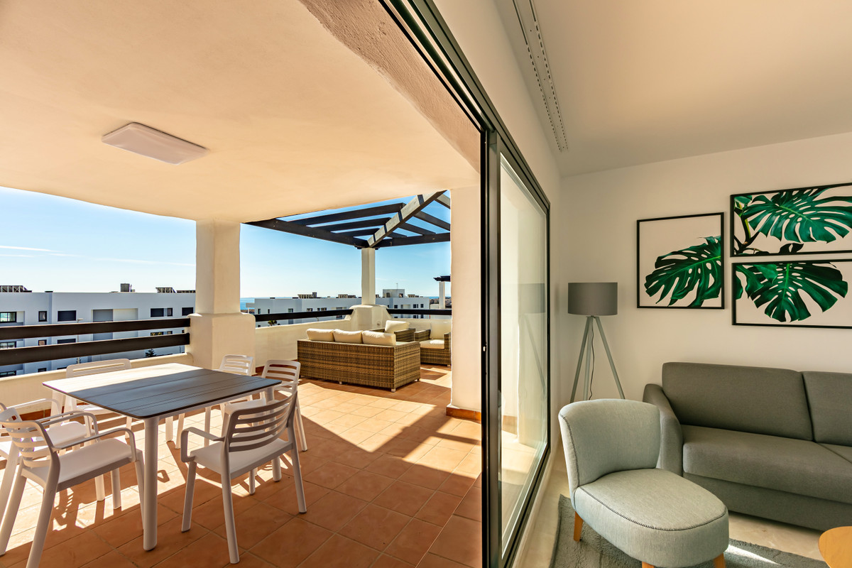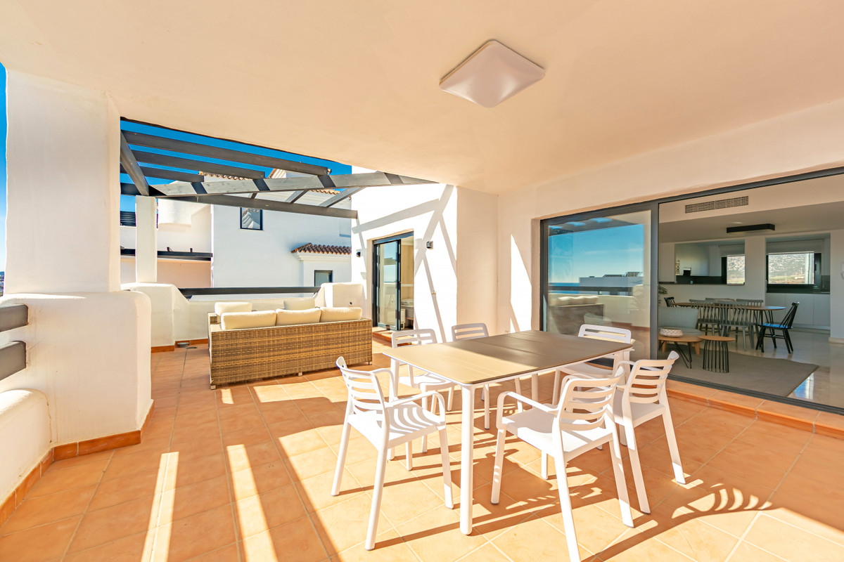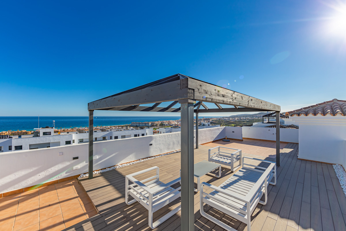 Exclusive APARTMENTS & PENTHOUSES located in Bahia de Casares, surrounded by one of the most prestigious golf courses in the Costa del Sol, with AMAZING VIEWS OVER THE SEA AND GOLF COURSES from its LARGE TERRACES south west facing. Walking distance to the marvellous beaches of Casares Playa, 10 minutes quiet walk to the commercial area of Sabinillas, and Puerto de la Duquesa. Only 20 minutes away from Gibraltar airport and 50 minutes from Malaga International airport. This property is within a private residential complex, equipped with 24h security cameras, 2 swimming pools, gardens, viewpoints, and indoor and outdoor gym. Built with LUXURY QUALITIES, kitchen furnished with home appliances included, air conditioning (cold-heat) fully installed with remote control, marble floors, and high quality stoneware, fully fitted wardrobes, security door and community internet. Parking and storage room, which you can access directly from the lift, are included in the price. Great investment opportunitty. Must be seen!
