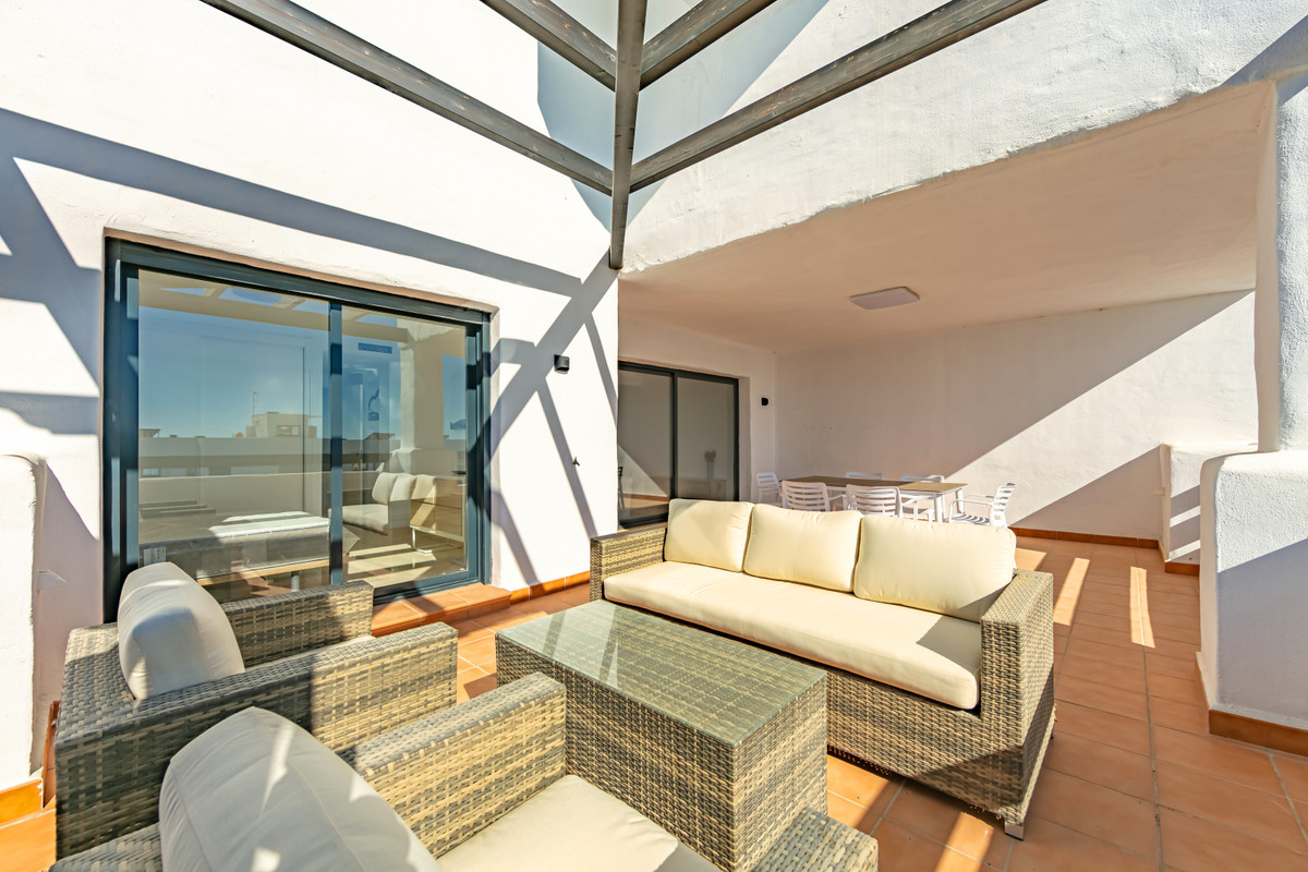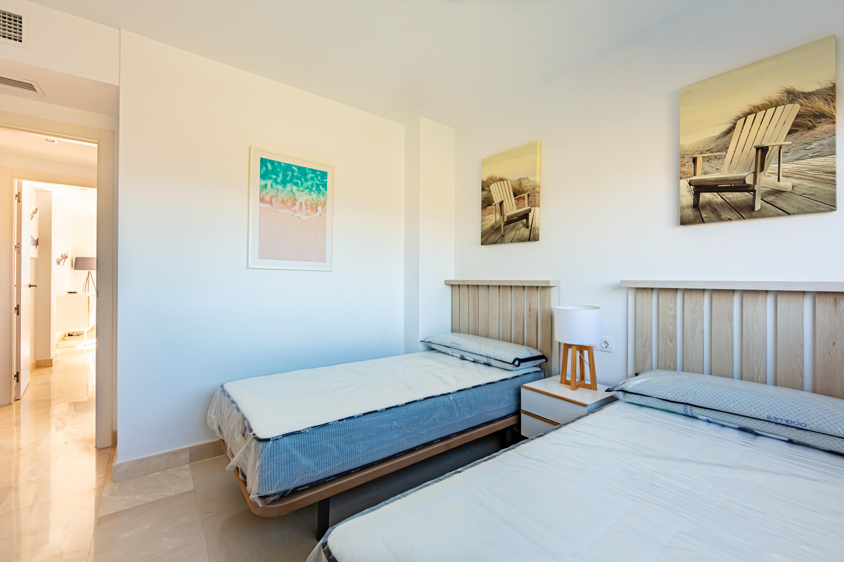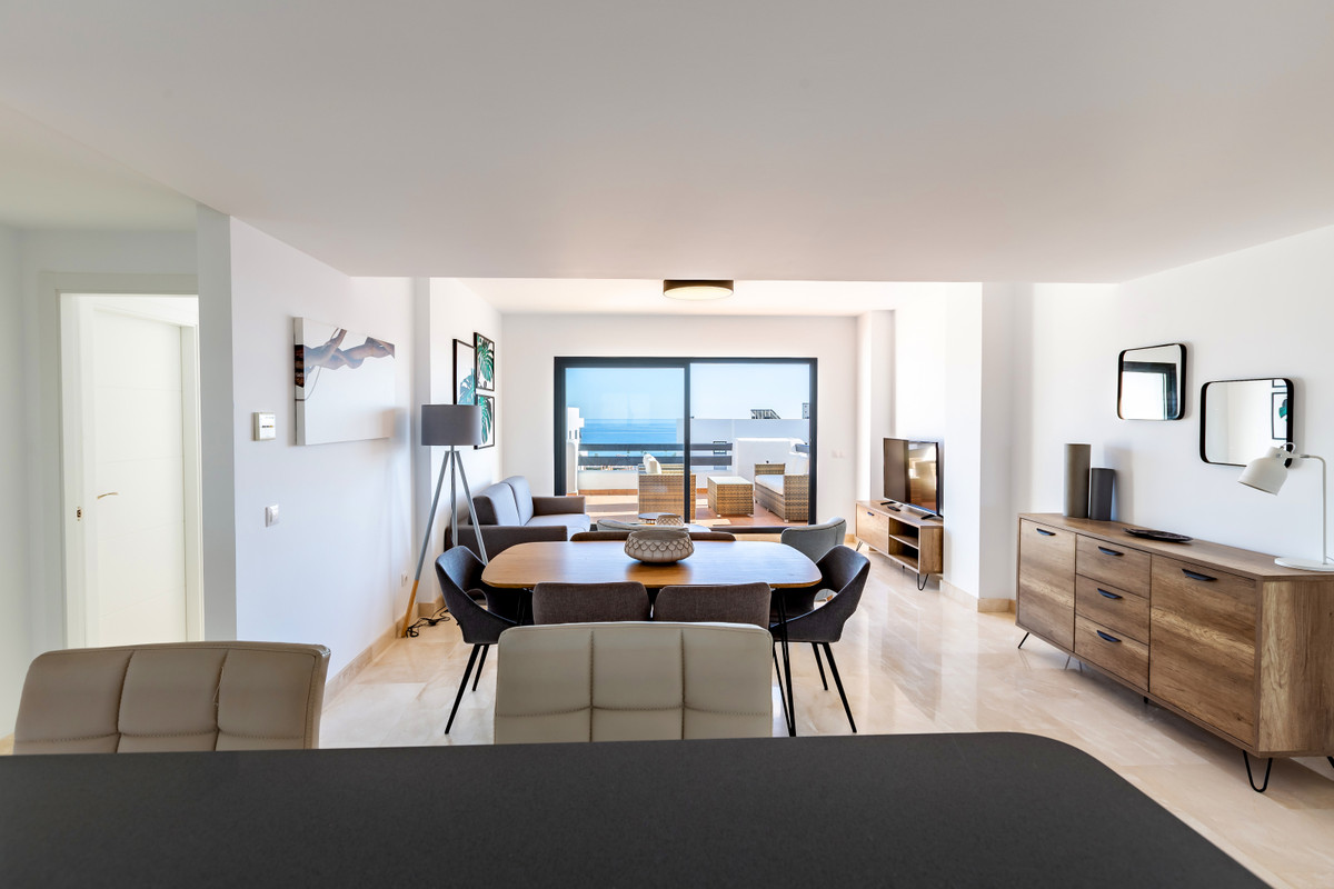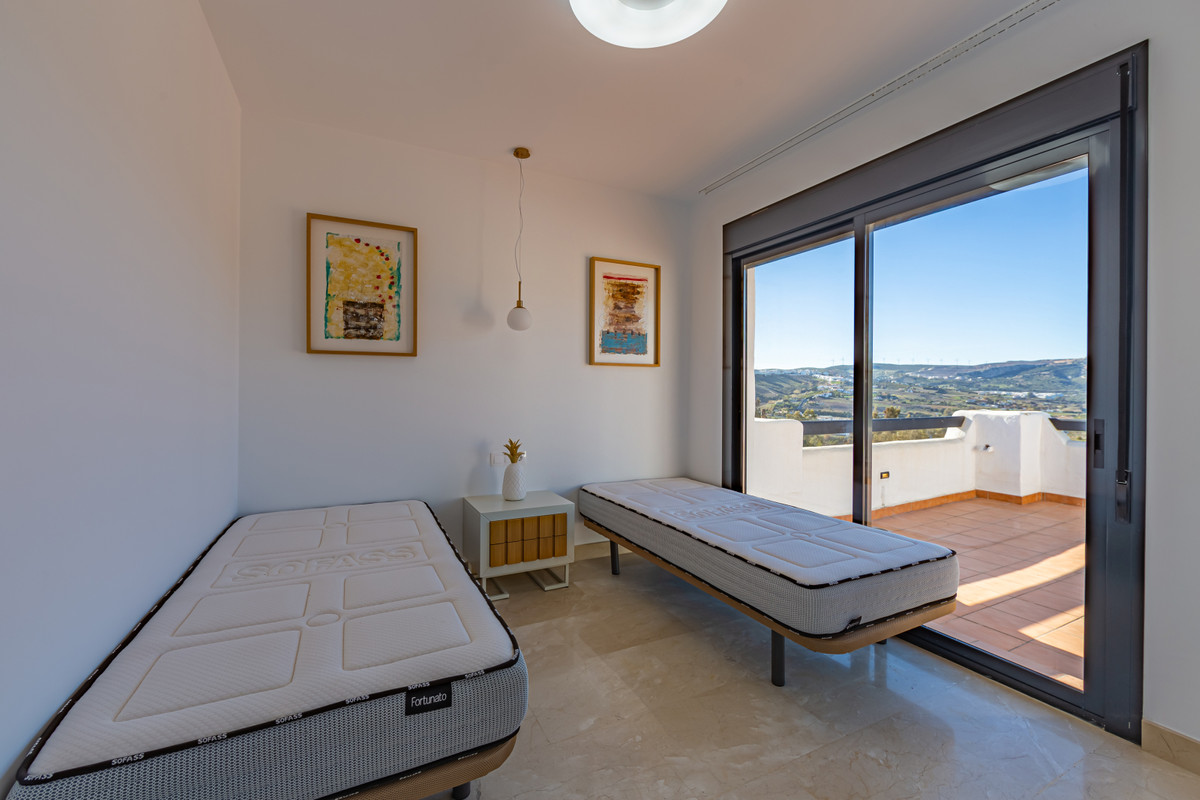 Exclusive APARTMENTS & PENTHOUSES located in Bahia de Casares, surrounded by one of the most prestigious golf courses in the Costa del Sol, with AMAZING VIEWS OVER THE SEA AND GOLF COURSES from its LARGE TERRACES south west facing. Walking distance to the marvellous beaches of Casares Playa, 10 minutes quiet walk to the commercial area of Sabinillas, and Puerto de la Duquesa. Only 20 minutes away from Gibraltar airport and 50 minutes from Malaga International airport. This property is within a private residential complex, equipped with 24h security cameras, 2 swimming pools, gardens, viewpoints, and indoor and outdoor gym. Built with LUXURY QUALITIES, kitchen furnished with home appliances included, air conditioning (cold-heat) fully installed with remote control, marble floors, and high quality stoneware, fully fitted wardrobes, security door and community internet. Parking and storage room, which you can access directly from the lift, are included in the price. Great investment opportunitty. Must be seen!