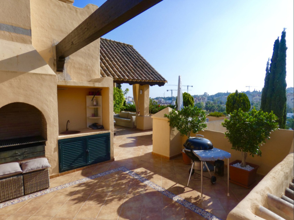 On the first floor we have a living / dining room with access to a magnificent terrace with views of the mountains and community gardens. On the same floor we find 2 bedrooms, each with its own bathroom and separate kitchen. On the second floor we have a master bedroom suite and dressing room, with access to a large terrace with its added advantages such as a kitchen with barbecue and Jacuzzi and panoramic views. Completely renovated apartment (kitchen, new air conditioning installations, windows, bathrooms and etc)