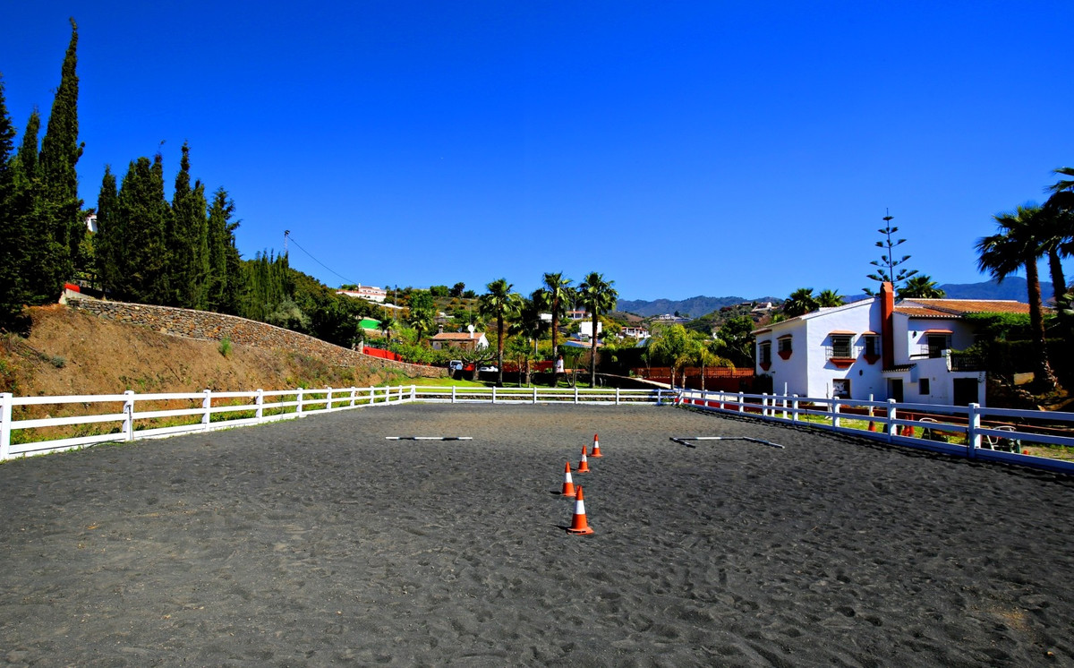 Eksklusivt og unikt i sin art: et 16.000 m2 andalusisk feriested med hestefarm mellem Frigiliana og Nerja - med et bebygget areal på mere end 1.600 m2! I alt har resortet ni soveværelser, ti badeværelser og to gæstetoiletter spredt over to traditionelle og autentisk designede bygningskomplekser. Det mindre hus har en privat pool og flere terrasser og består af tre soveværelser, tre badeværelser, en stor stue med pejs og et fuldt udstyret køkken. Hovedbygningen er opdelt i to fløje, hver med tre soveværelser og badeværelser, et fælles køkken og en lounge med pejs. Fra begge saloner kommer du ind i parken bag huset med sin karakteristiske dobbeltpool. En stor garage under hovedhuset kan også let omdannes til yderligere to uafhængige boliger; alle enheder er allerede på plads. Ejendommens rideområde måler 20x40 meter og er udstyret med projektører. I øjeblikket har feriestedet to stalde med i alt 13 kasser. Lyder som en rigtig drøm? Vi finder det også - og ser frem til at præsentere denne eksklusive ejendom, som udelukkende markedsføres af os, på stedet eller ved virtuel tur ... her hos os: på den solrige side af livet.