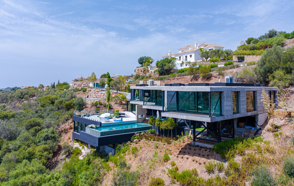 Presenting a State of the Art Contemporary luxury villa nestled on a secluded and serene plot, offering breathtaking golf and partial sea views. This south-east facing property gracefully perches on the rocks, commanding stunning vistas of the first fairway at Marbella Club Golf Resort.
