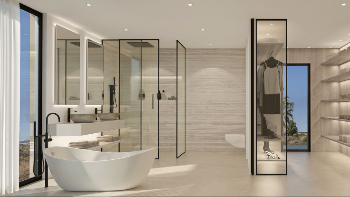Store terrasser og en anlagt have med infinity-pool skaber en oase af ro med fantastisk udsigt. Denne luksusvilla tilbyder ultimativ komfort og det bedste fra Costa del Sol.