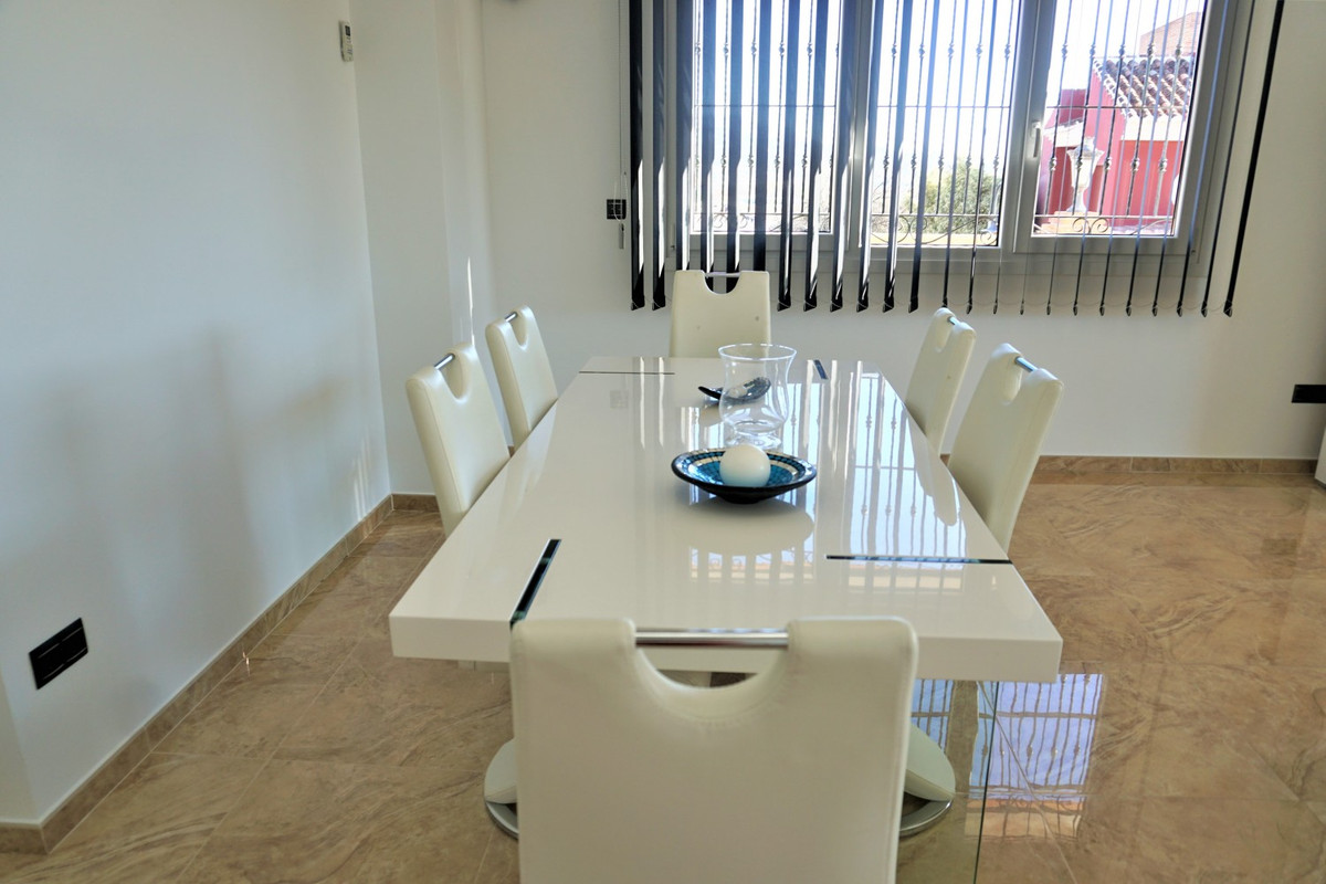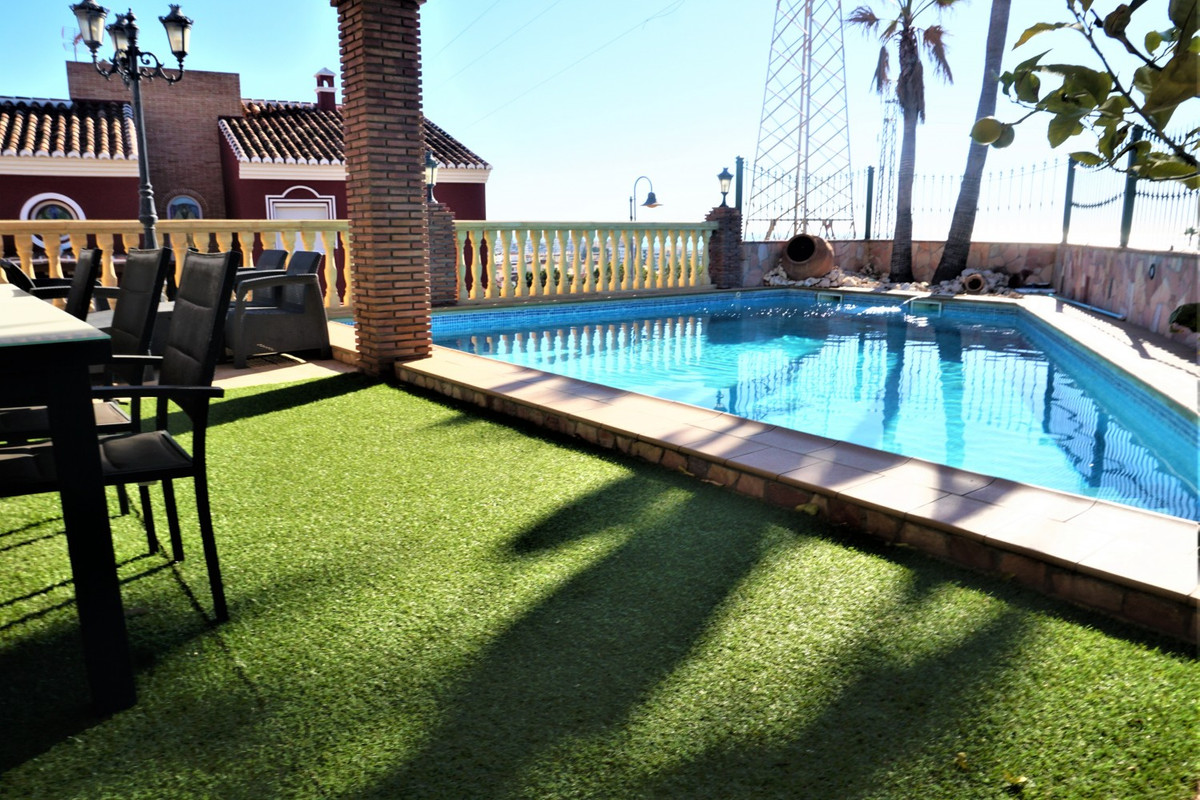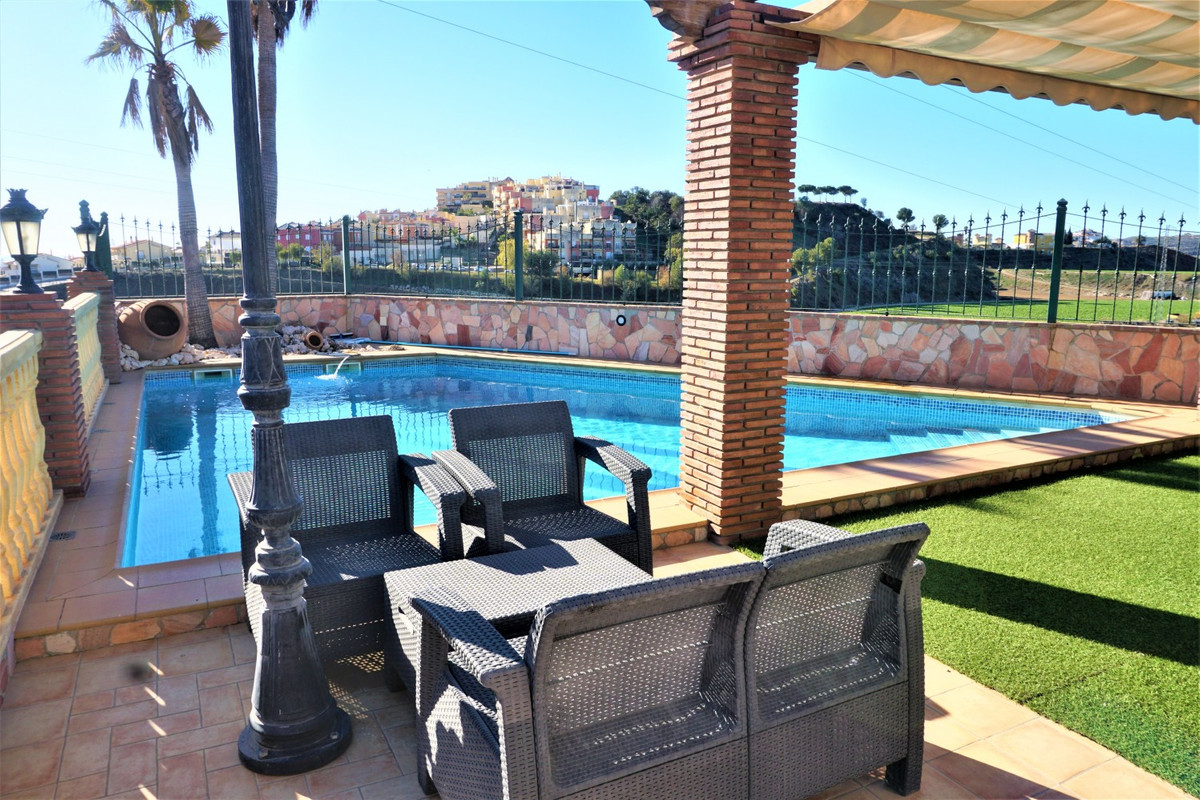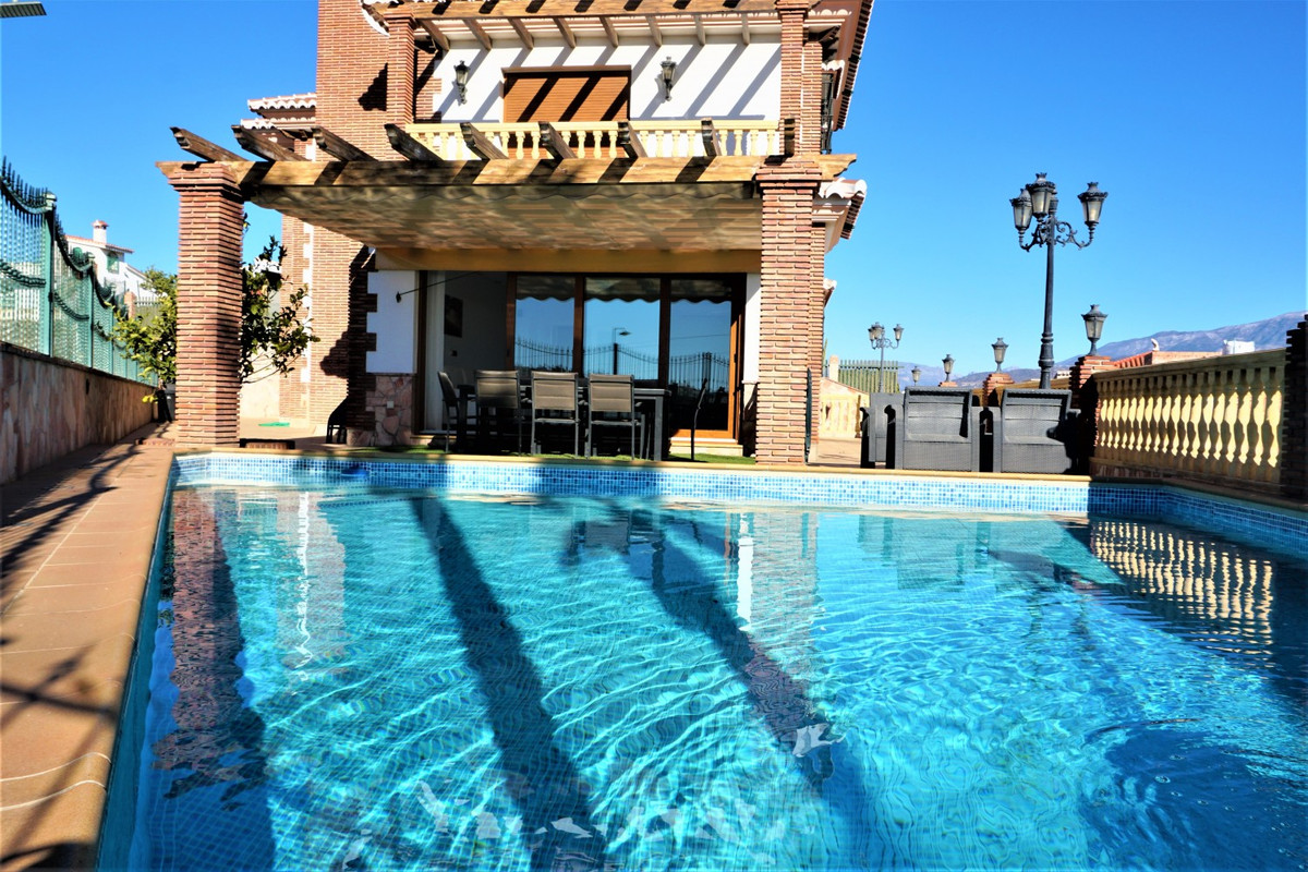 Vi står over for en villa beliggende i Viña Málaga. Det er i et meget roligt område, men det er tæt på byens centrum, butikker, apoteker, skoler. . . og stranden. Det er en meget moderne villa, der blev bygget i 2014, og er i perfekt stand. Den består af 4 etager.   I stueetagen finder vi en garage på ca. 200m2, hvor der er mellem 4 - 5 biler. Der er også et lille toilet og et opbevaringsrum. Derudover har den en bordplade med vask. Går op til næste etage finder vi det fuldt udstyrede køkken, dette har adgang til en terrasse. På samme etage finder vi et badeværelse med bruser. Her er et af soveværelserne, med indbygget garderobe. Der er også spisestuen og stuen med udsigt over terrassen og poolen med et stort vindue.  På øverste etage finder vi hovedrummet, som omfatter et påklædningsværelse og et badeværelse. Der er også et andet soveværelse, som omfatter den indbyggede garderobe. Denne etage giver adgang til den øverste terrasse i huset. Vi er glade for at kunne præsentere denne ejendom for dig snart, enten personligt eller gennem virtuel vision. Fordi denne verden er unik - ligesom vores Axarquia. I Andalusien. På Costa del Sol. Her på solsiden af livet...