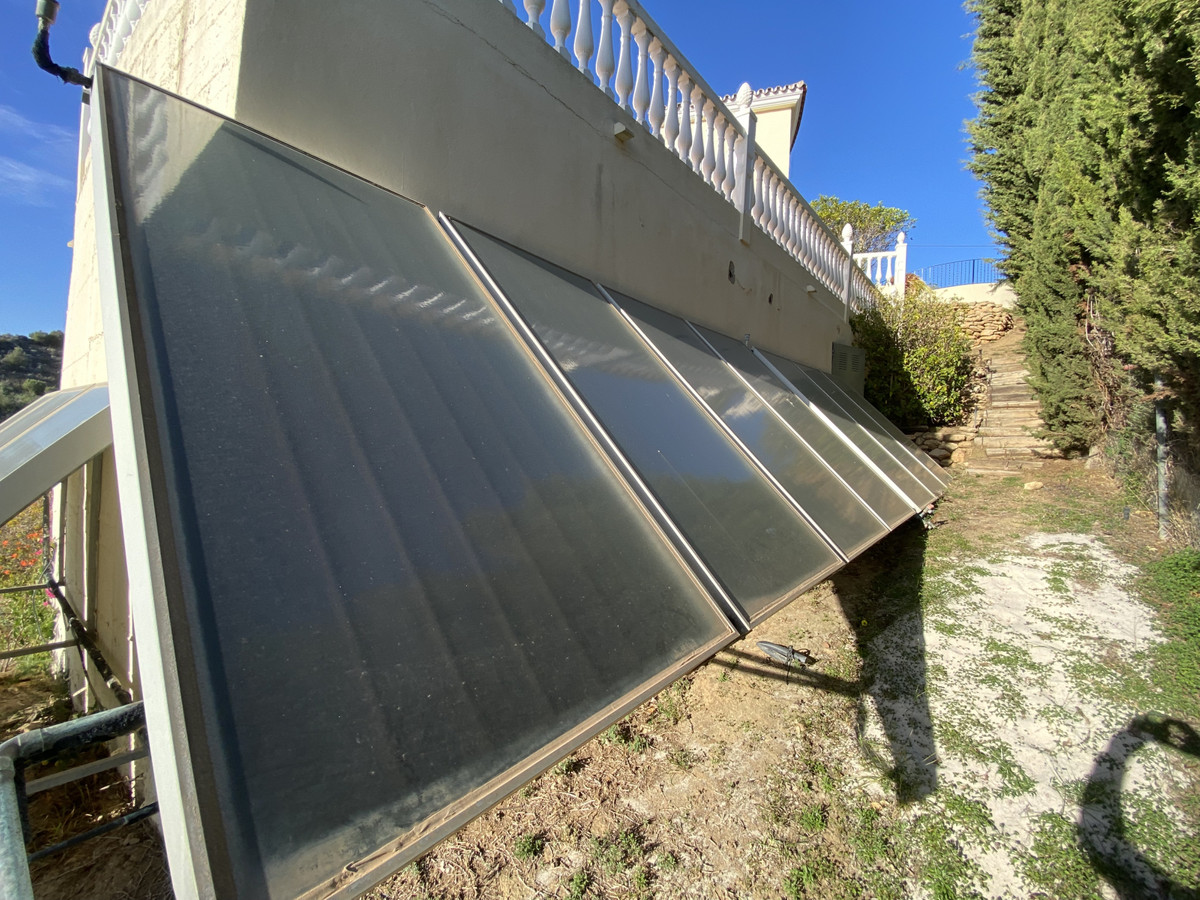 Of course most of your time will be spent outside soaking up the Spanish sunshine on one of the many terraces. The pool has Roman steps to for ease of access easy. There is a lovely covered terraced area adjacent to the pool that is perfect for dinning. The villa also has a grassed area with some fruit trees and well hidden solar panels.