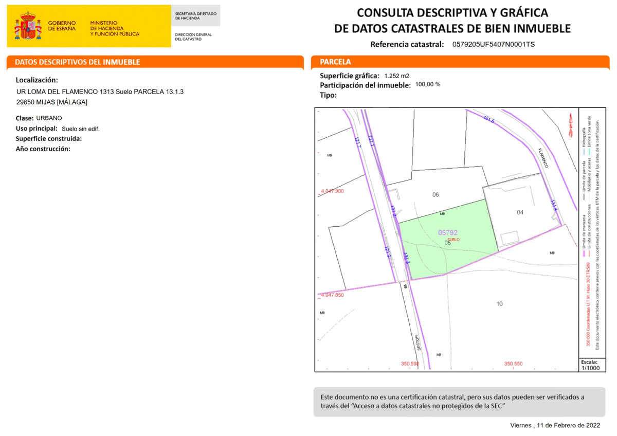 Superb urban plot on the edge of the Lomas del Flamenco urbanisation, just a short drive from Mijas Golf and perfectly positioned between Mijas Pueblo and the Mediterranean. The setting is tranquil and natural, with open, unobstructed views towards the sea and the dramatic peaks above Marbella—an inspiring backdrop for your future home.