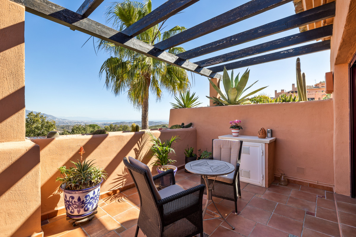 Rummelig duplex penthouse med tre soveværelser og to badeværelser beliggende i bjergene over Marbella, med fantastisk naturskøn udsigt indefra boligen og ikke mindst fra boligen tre terrasser.