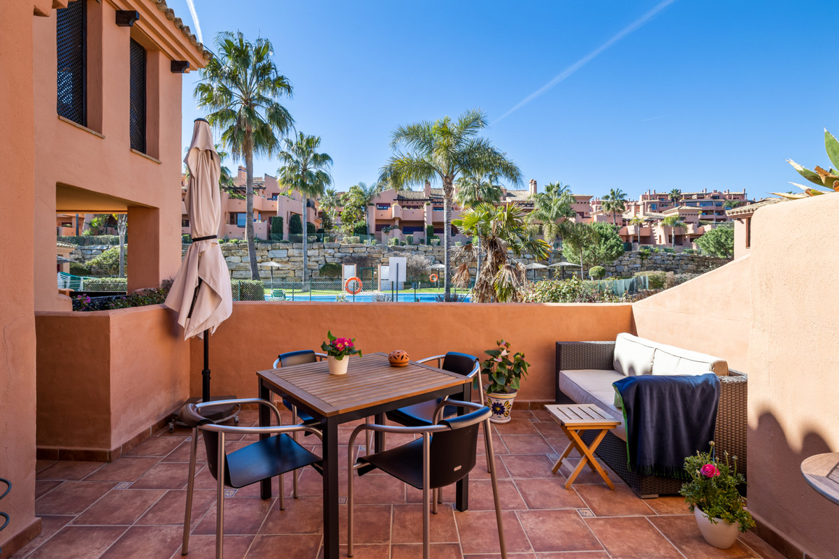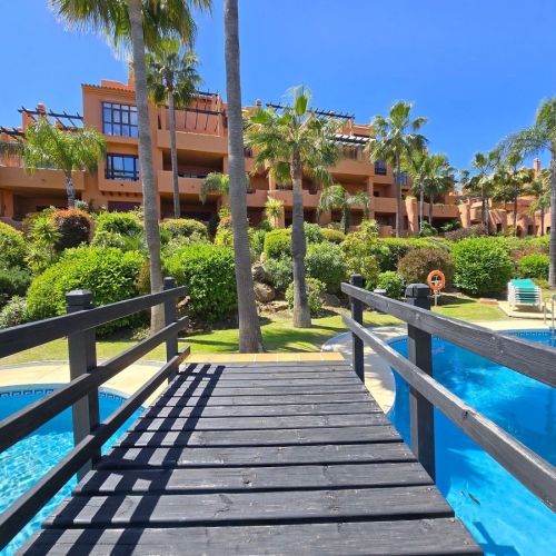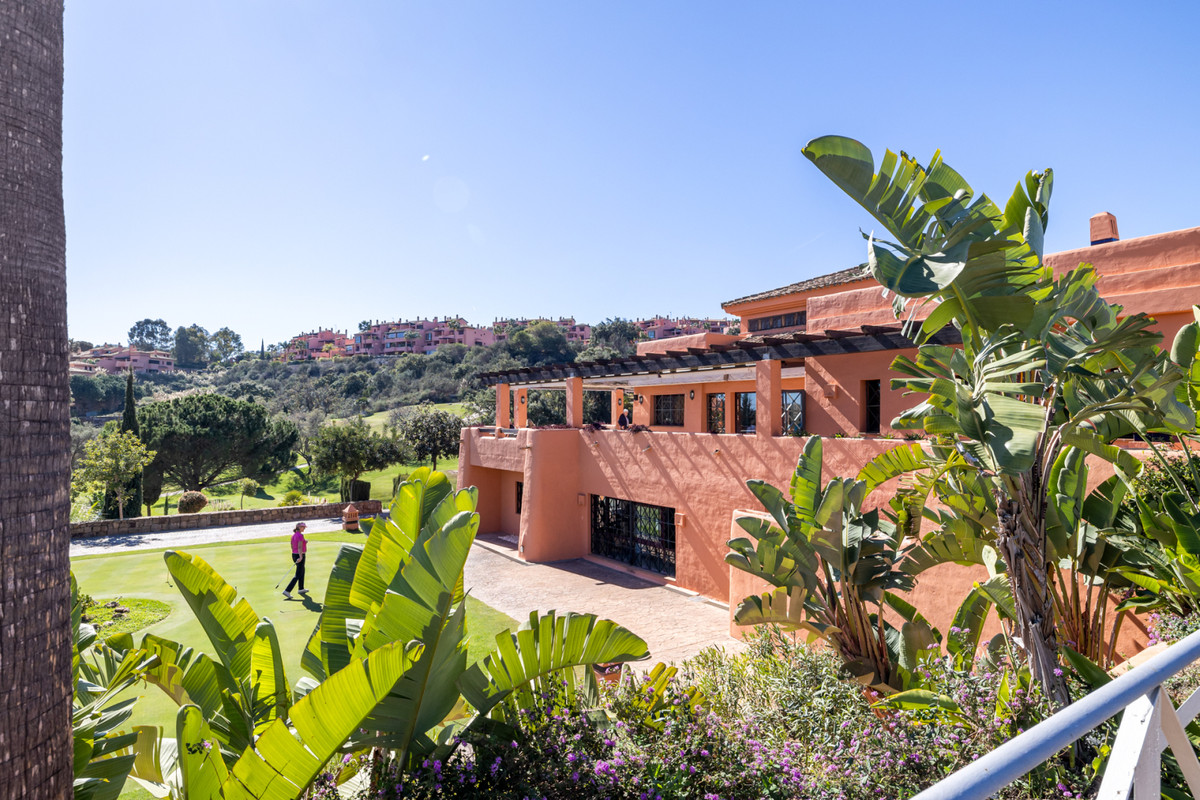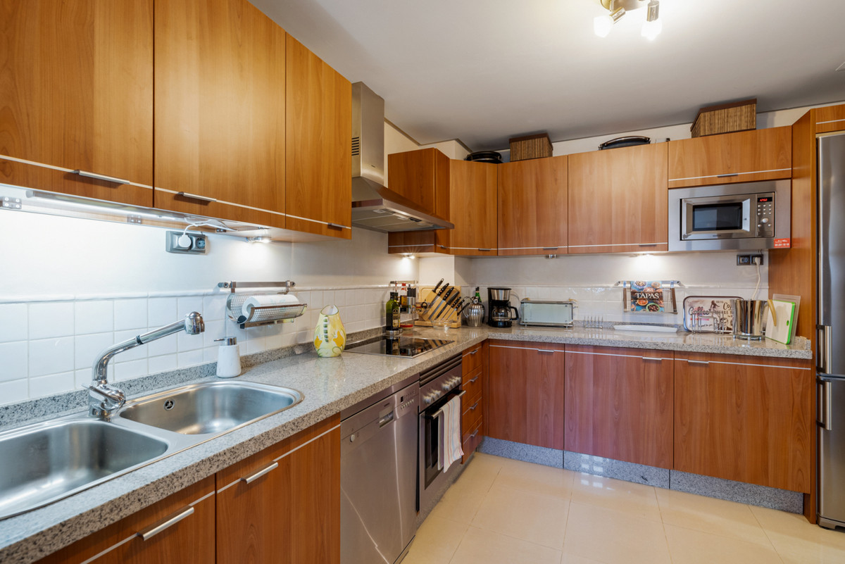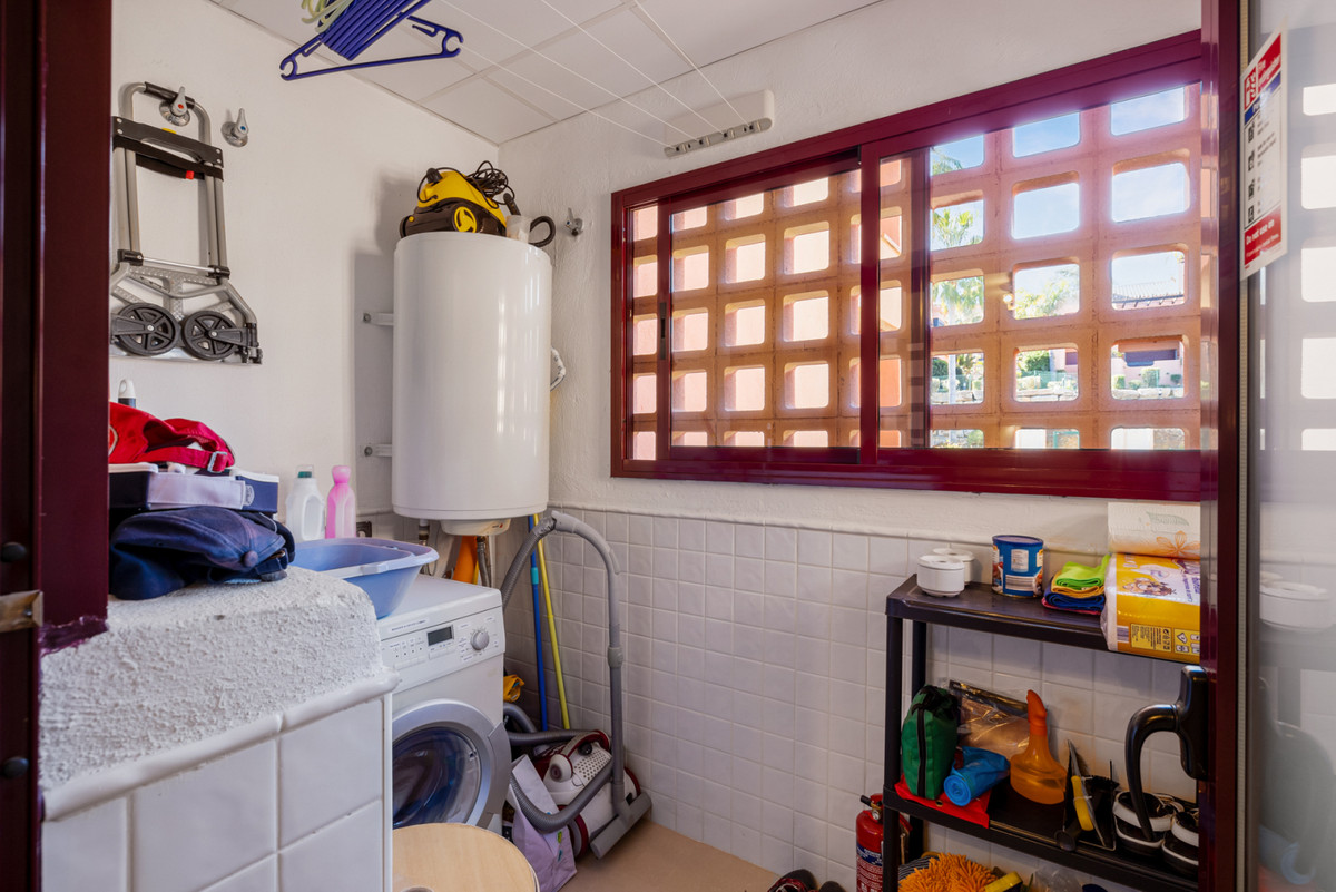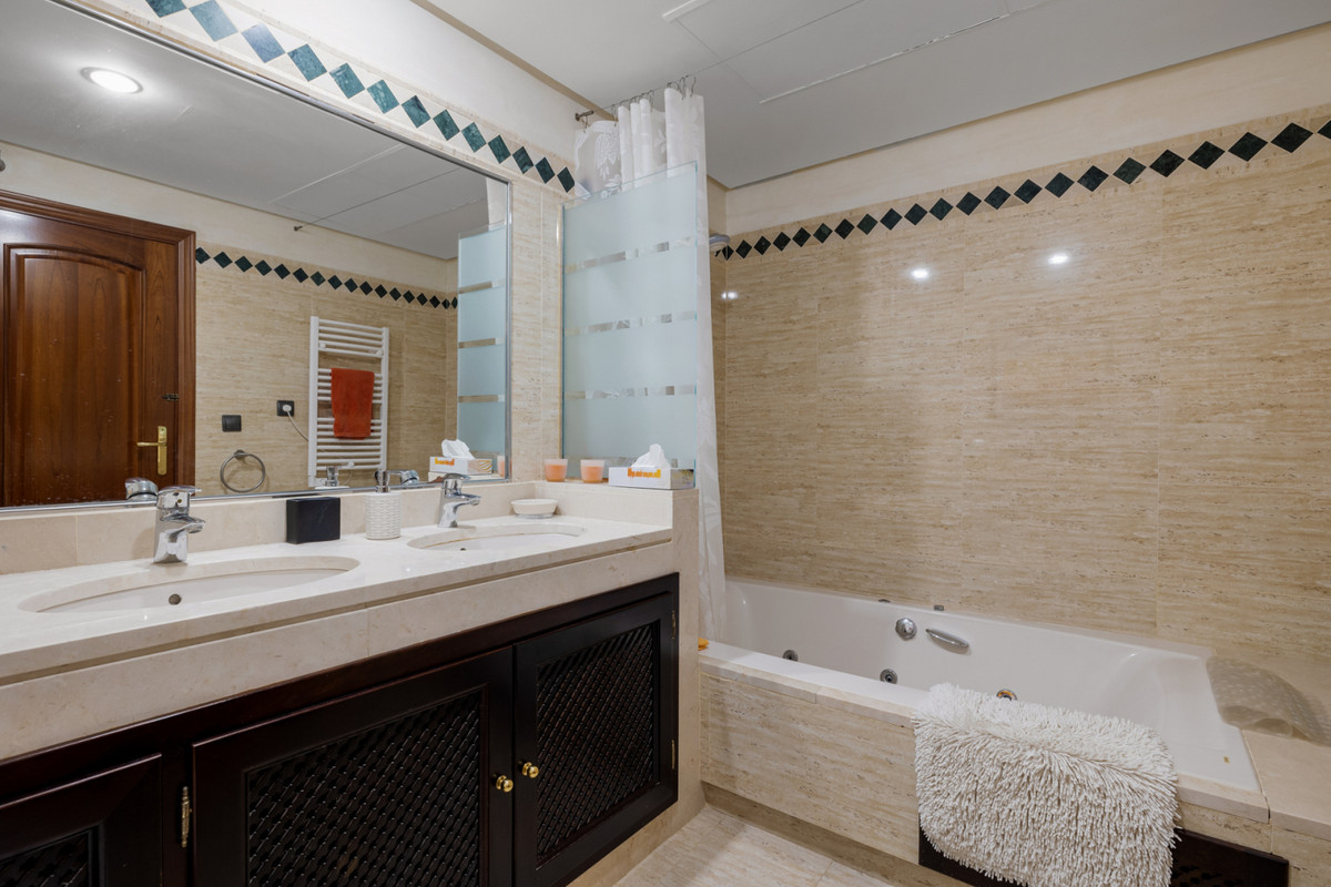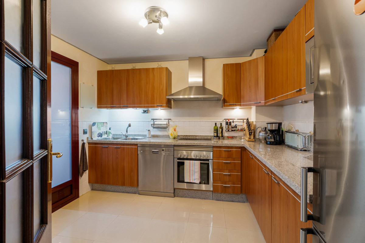 Fra stuen med højt til loftet er der direkte adgang ud til boligens største terrasse, hvorfra du har udsigt til den spektakulære Mijas Sierra-bjergkæde. Det er en af de mest fantastiske udsigter på kysten! Lejligheden er en duplex lejlighed og på stueplan finder du stue, spiseplads og hovedterrasse; køkken og bryggers; to soveværelser, et familiebadeværelse og en anden terrasse, som har udsigt til poolområdet og den tropiske have. Hele den øverste etage er en master suite komplet med påklædningsområde, ensuite badeværelse og privat terrasse.