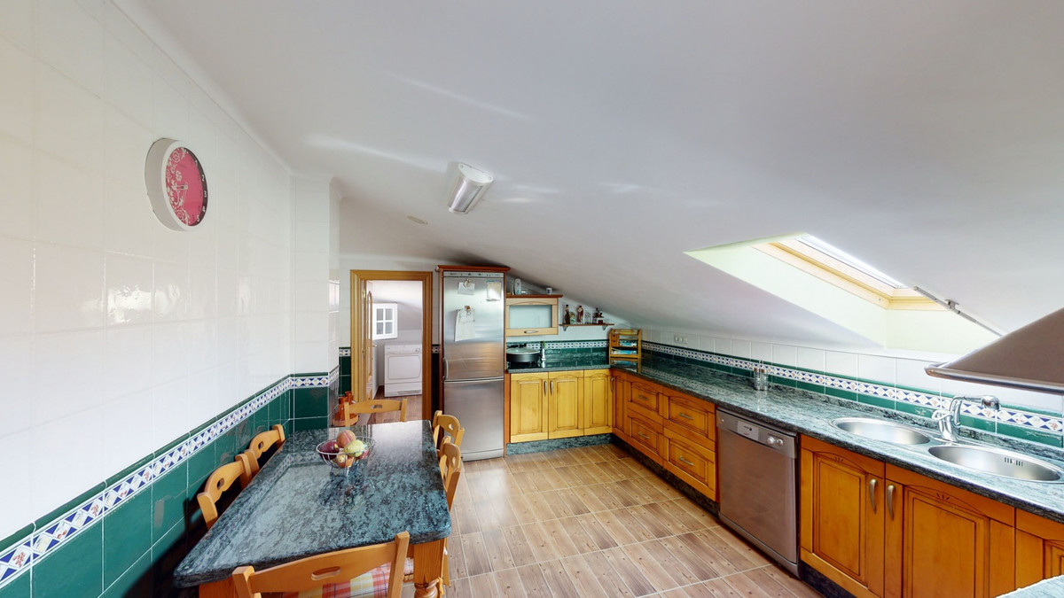 Denne rummelige, velbeliggende villa giver mulighed for, at to familier kan bo hver for sig. Den 217 m2 store garage har plads til 5 biler, kontor og opbevaringsplads. Indgang til haven med dejlig pool, bruser, frugttræer og hønsehus. Separat værelse med ekstra køkken/grill og overdækket terrasse. Stueetagen på 216 m2 med hall, stor stue, stort tilstødende fuldt udstyret køkken, opbevaringsrum og stor udendørs terrasse. Tre badeværelser, tre soveværelser med indbyggede skabe og aircondition varmt / koldt. Vaskerum, der kan bruges som soveværelse. Overetage på 159 m2. Stue med højt til loftet, fuldt udstyret køkken med spisekammer, vaskeri, badeværelse. Udendørs terrasse. Huset blev bygget til en meget høj standard med de bedste materialer, da ejeren var bygherren. Vi er glade for at kunne præsentere denne ejendom for dig snart, enten personligt eller gennem virtuel vision. Fordi denne verden er unik - ligesom vores Axarquia. I Andalusien. På Costa del Sol. Her, på livets solside...