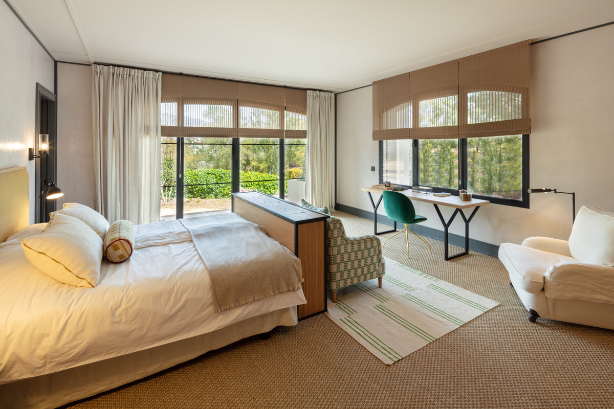 The lower level has been completely renovated into the ultimate entertainment and wellness centre. Including a multi elevation movie theatre room and designated loft-style bar with mirrored ceilings, a custom hammam SPA fit for a king and heated indoor pool, massage room, a gaming room with Formula 1 seats, state-of-the-art gym complete with the latest equipment and a bowling alley, and a poker salon. The equally stunning guest house hosts 7 bedrooms, with a continuous line of unifying details and exquisite finishes throughout. La Gratitud is truly a timeless masterpiece and one of the grandest properties to come to market in Marbella in recent years.