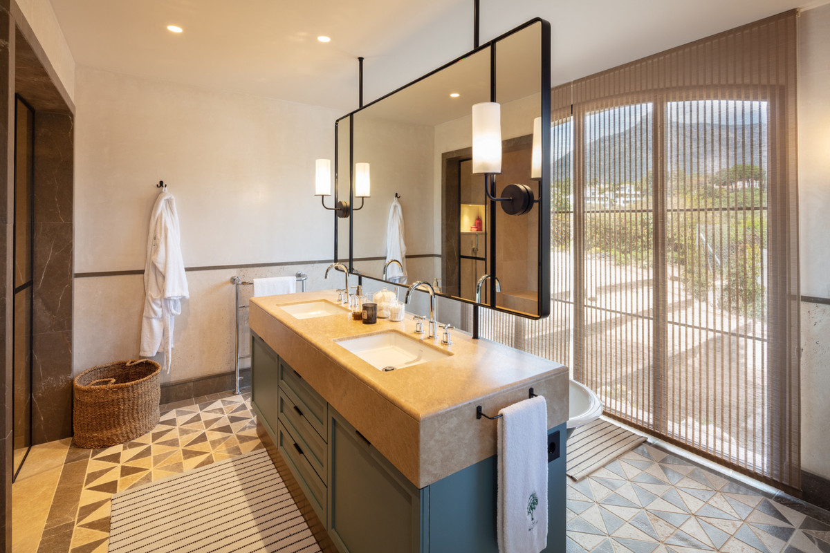 With an impressive total of 9 sizeable bedrooms, spread evenly throughout the main estate, each one has been carefully designed, making the most of its capacity. The master suite is truly astounding, designed with natural wooden touches throughout, personalised cabinetry and unique design elements, overlooking the magnificent sea views and harmoniously flowing onto the private terrace. With an integrated spacious and elegant master bathroom, its centre piece being a beautiful green copper clawfoot tub with an open glass ceiling, with plentiful nature views and direct access to an outdoor Jacuzzi.