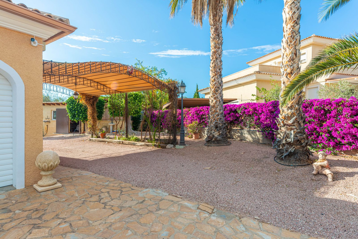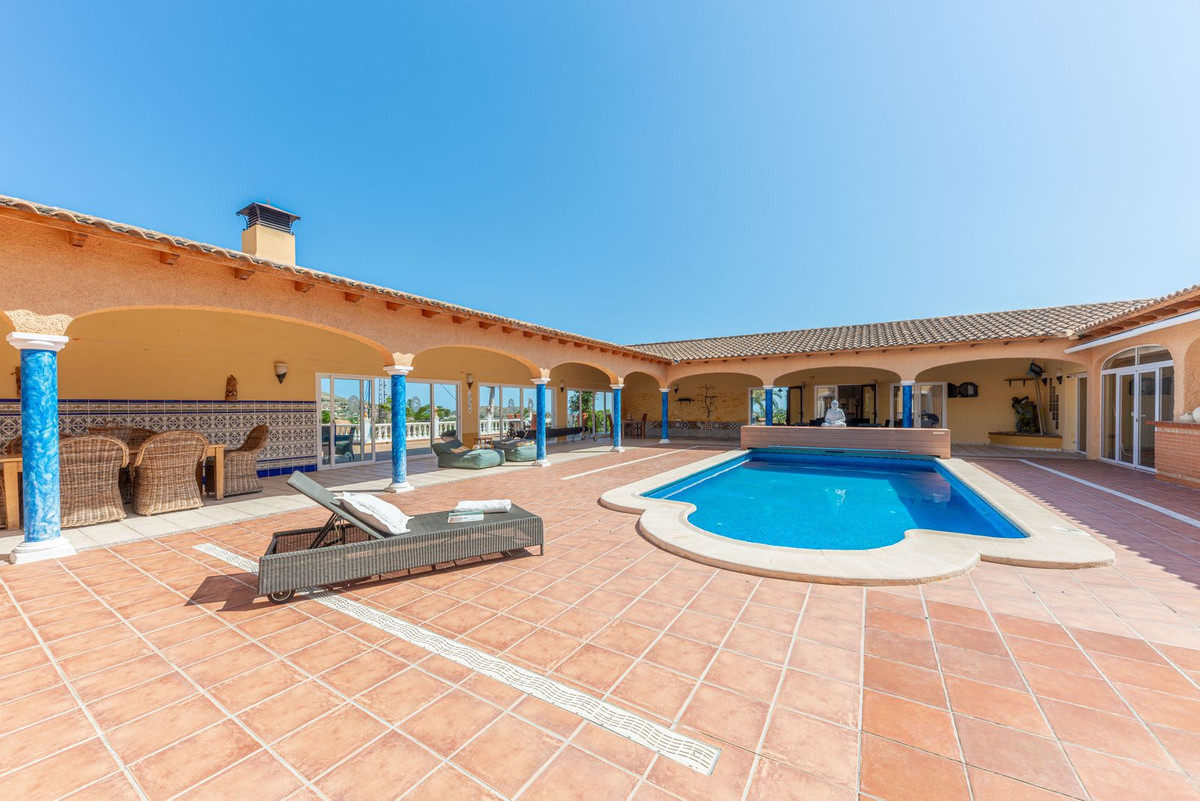 In Costa Blanca North, in the sought-after residential area of Pla Lloma, Busot is this majestic courtyard-design villa, set on a large flat plot of more than 8 times its size. In close proximity to the nearby picturesque village of Busot, Bonalba Golf course, the beautiful coastal town of El Campello and the city of Alicante, this excellently located and imposing property is very well presented and affords views to the mountains and Mediterranean sea. Private and spacious, the property offers a rare courtyard design.