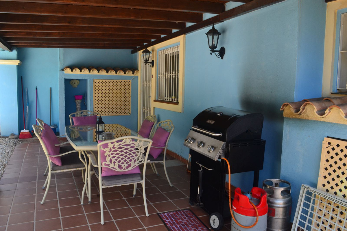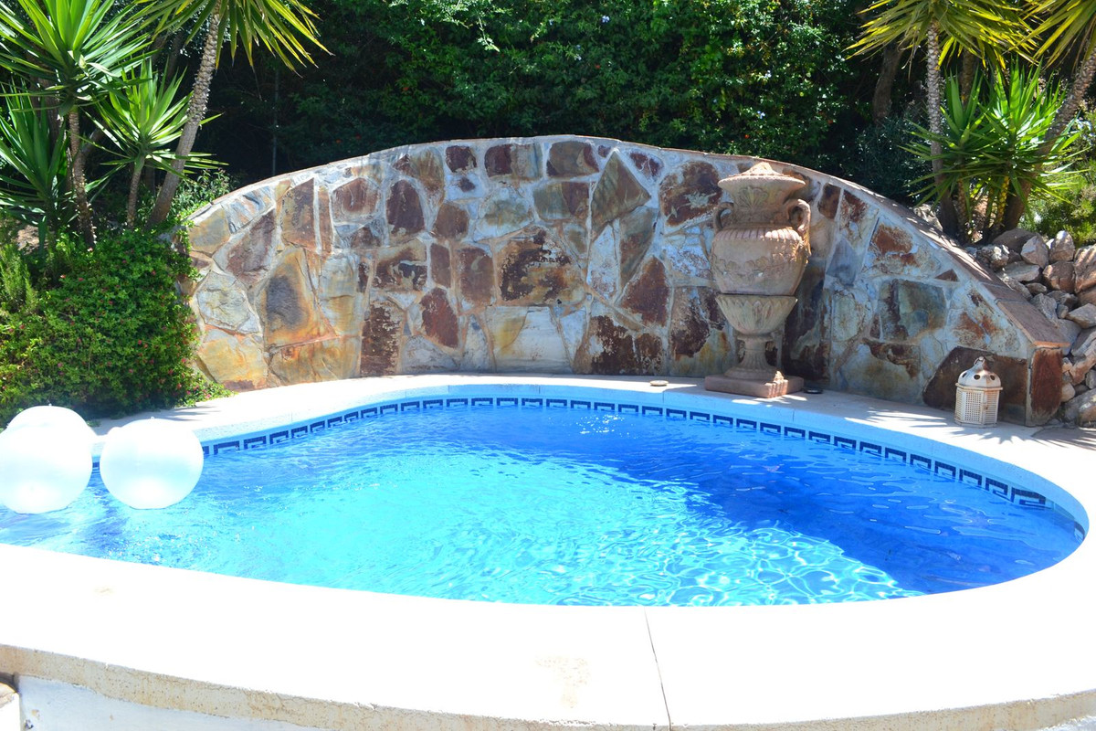 Outside around the back you have a nice covered terrace with bbq area and storage room, nice well maintained and easy maintenance garden with steps up to the plunge pool and seating areas.
