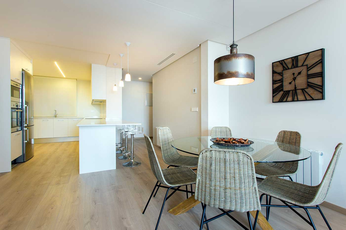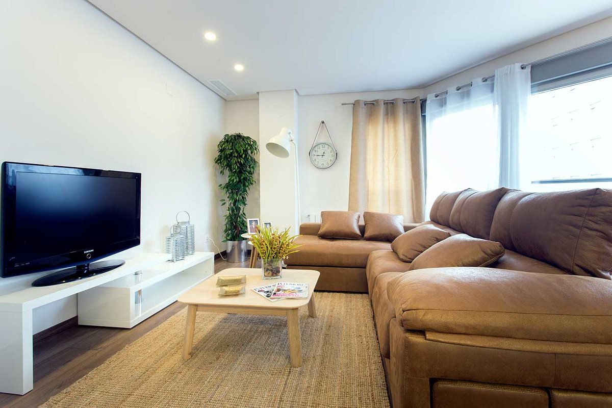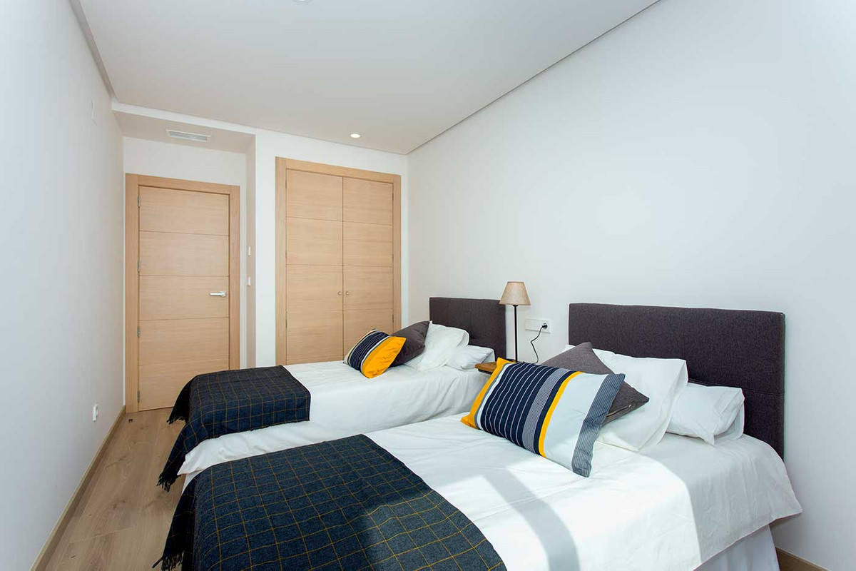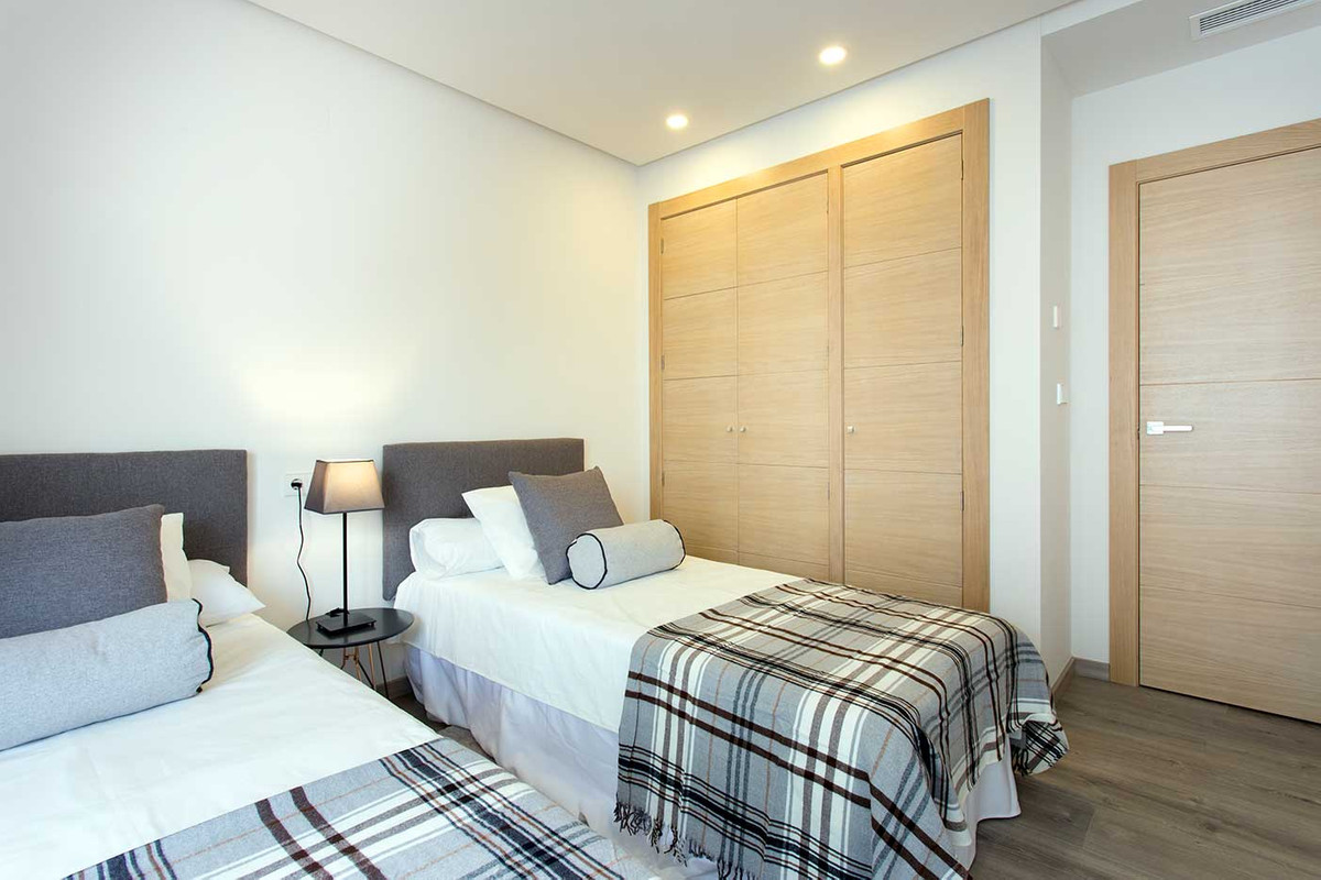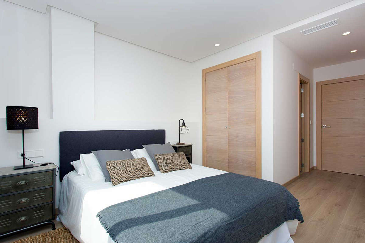These modern flats have 2, 3 or even 4 bedrooms with fitted wardrobes, 2 complete bathrooms, a fully equipped kitchen with extractor fan and interior patio.