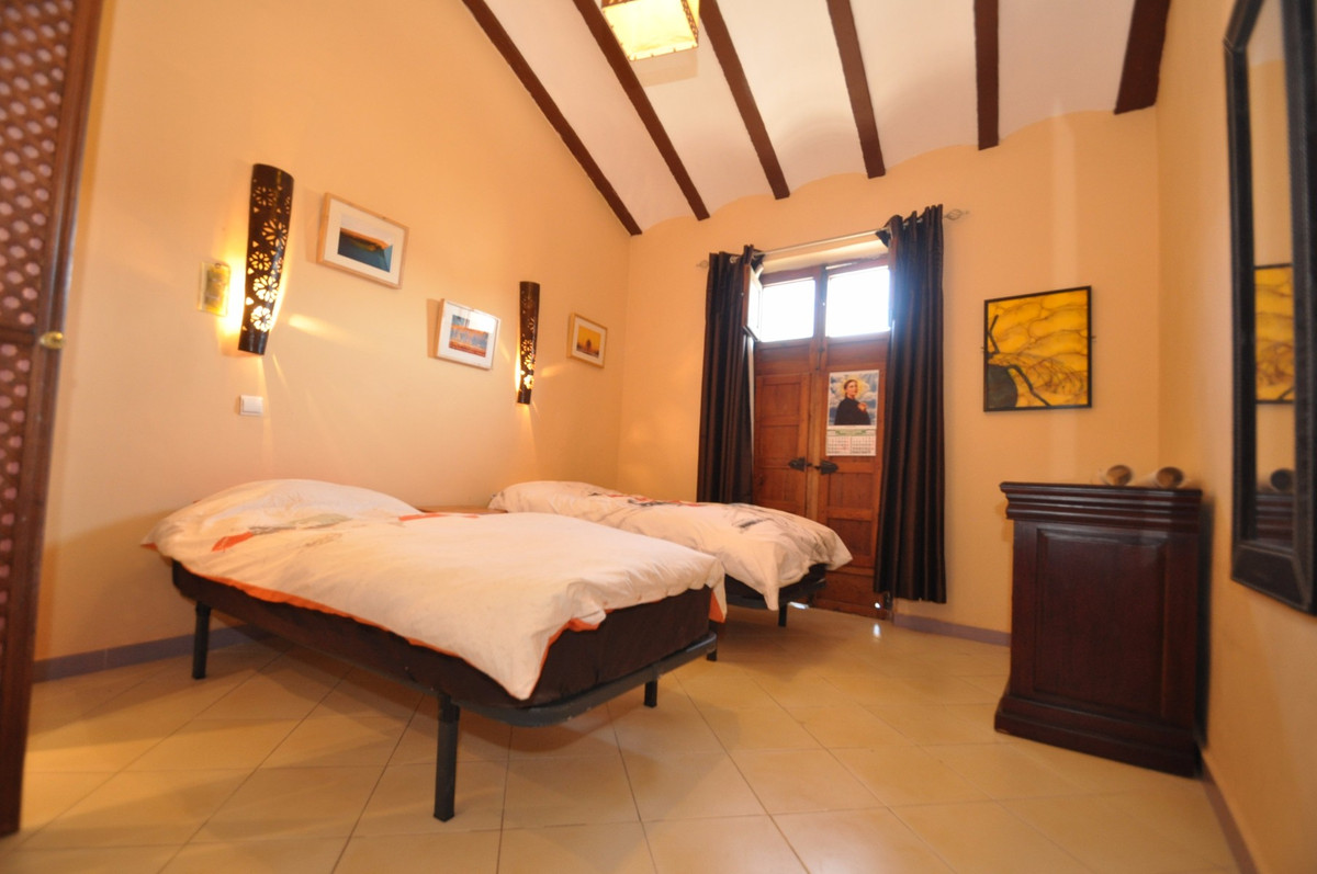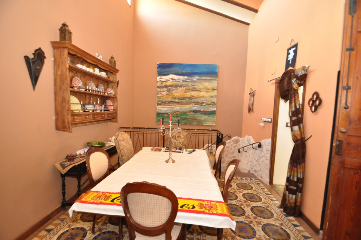 A fantastic business opportunity . This country house has been beautifully restored in a traditional Spanish style and located in a central location in Pinoso within walking distance of all amenities. Upstairs there is a master bedroom with ensuite, a guest room with ensuite, a large kitchen, lounge and on the mezzanine floor there is an office space. Downstairs is currently being ran as a bar where there is a large kitchen, a spacious bar and dining area. There are a further 2 dining rooms which could also be utilised for private functions if required. " further snugs and a large garage which is currently being used for storage but also gives access to the upstairs room which could be used as a separate guest annexe