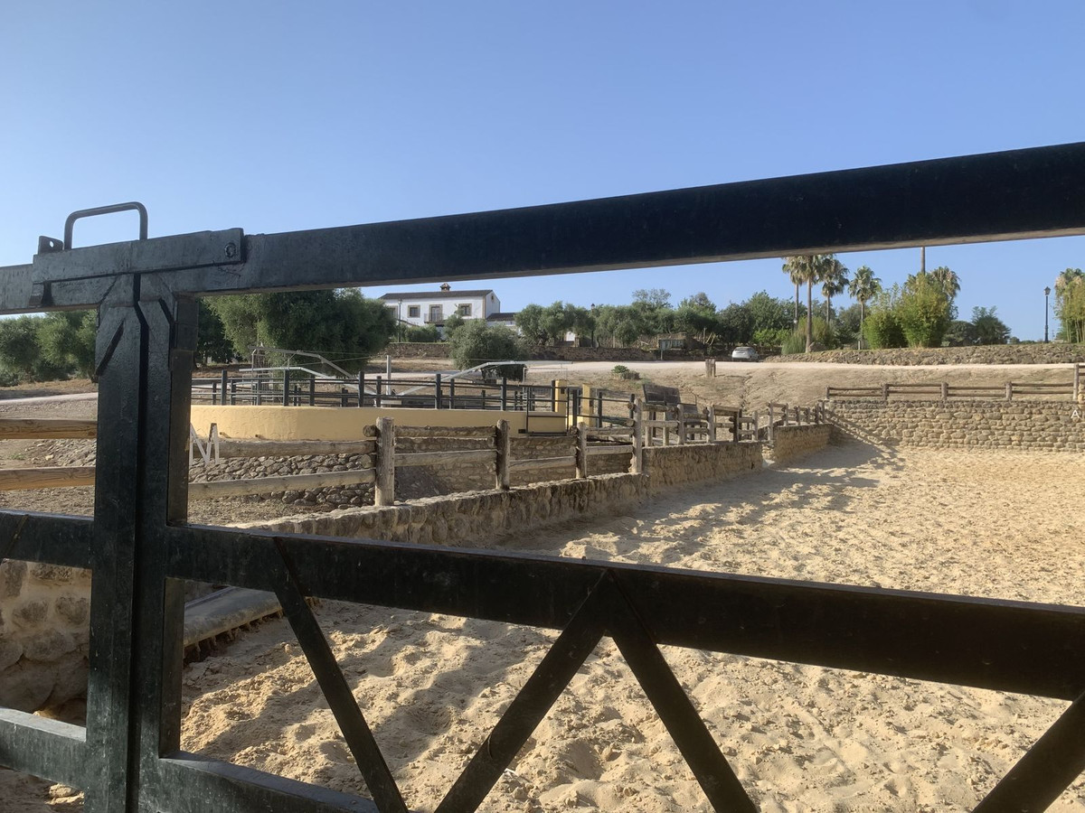 On the same farm, we have 350 olive trees and 8 carob trees in full production, corrals for animals and part of the land is used for planting feed for the horses.