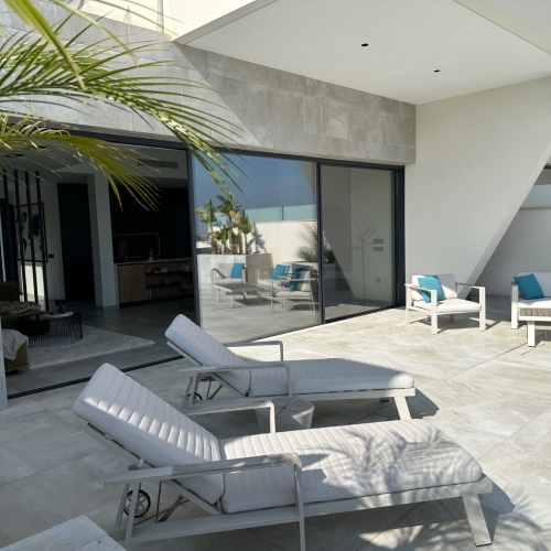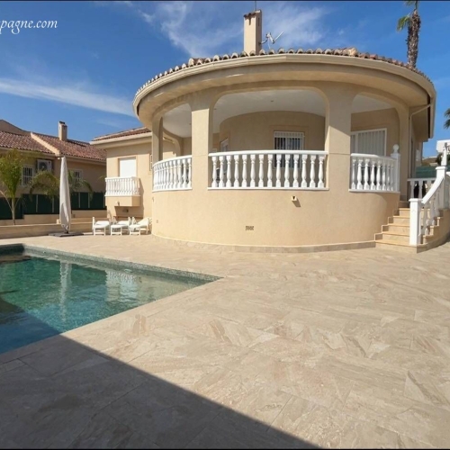 This beautiful modern villa located in Ciudad Quesada on the top.Main villa with large salon/dining room and kitchen,2 large bedrooms both with bathroom en suite,spectacular view from the salon on the swimmingpool and the valley,infra red heating and aircoonditioning.                                                                                Separate studio with bedroom,bathroom,tv,heating,aircofridge and terrace.Separated big apartment with salon/dining room 2 bedroom,bathroom,little kitchen,heating,airco and terrace. Separated apartment downstairs with garden,big salon/dining room,bathroom and bedroom and airconditioning.swimming pool is heated and with jacuzzi in.Nightlights with led.Sunpannels on the roof.