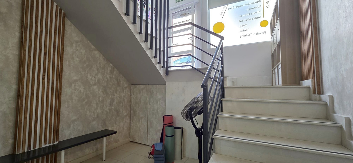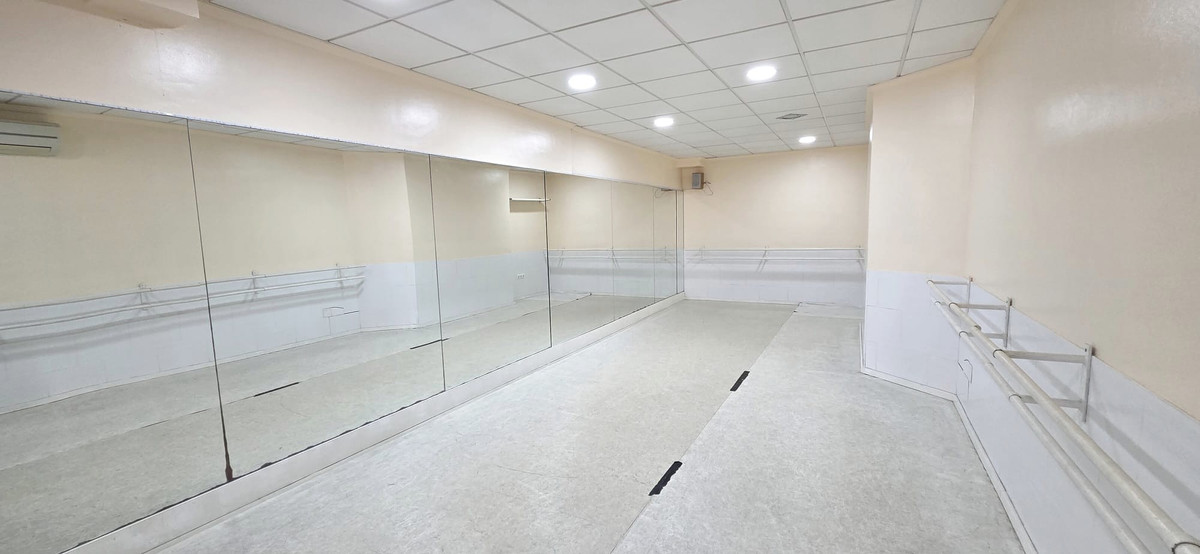 This space is currently set up as a dance school, distributed over two floors: semi-basement and first floor. It includes two equipped studios, changing rooms, and two bathrooms, with air conditioning installed, as well as electricity and water connections.