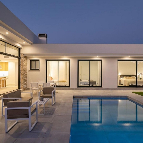 Outside is a large terrace surrounding the pool, the perfect place for relaxing and entertaining.