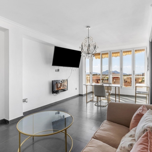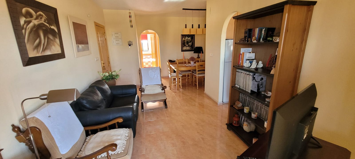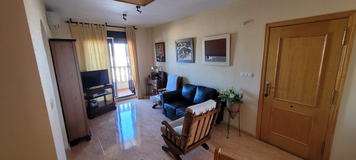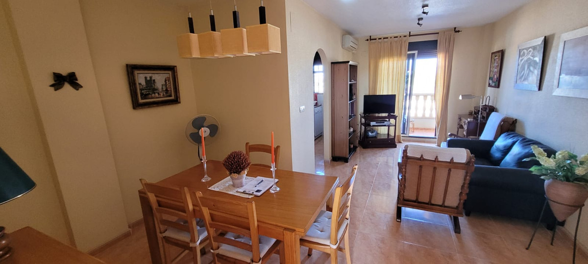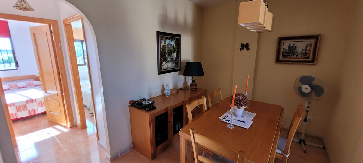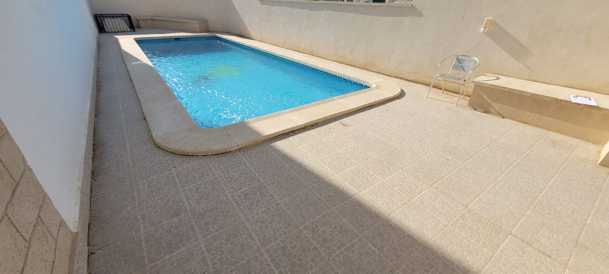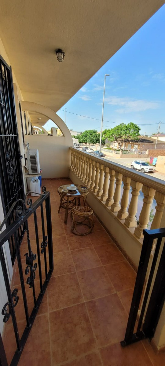 This second floor duplex style apartment has a living space of 65 m2 and a private roof top terrace of 55 m2. corresponding to the apartment whose access is through the apartment itself.The living area consists of a living/dining room with access to the balcony, a fully fitted kitchen, two double bedrooms with fitted wardrobes and a bathroom. The property is sold partly furnished and has air conditioning (hot and cold).You can enjoy the sun at the communal pool. Located in Daya Nueva, a typical Spanish village, only 5 minutes drive to Almoradi for the big supermarkets, 15 minutes to the beaches of Guardamar and La Marina and 30 minutes to Alicante airport.