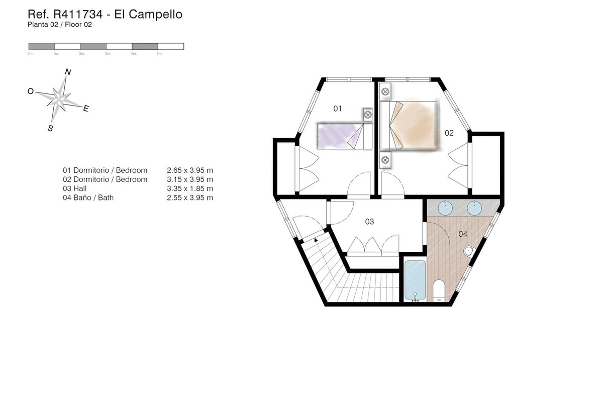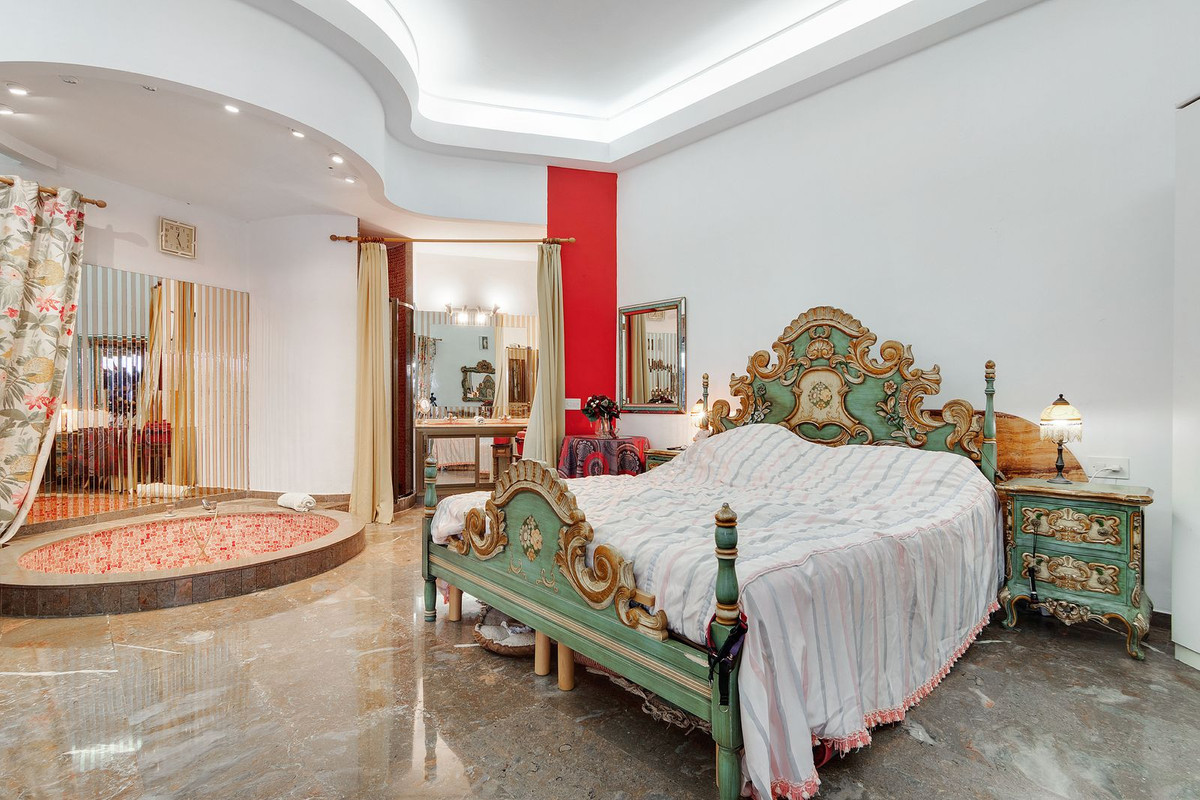 Entry level is comprised of 5 areas. The lounge, dining area, kitchen and main bedroom all are generous areas with high ceilings and the lounge and the dining area are separated by a fireplace. The master bedroom has an inset bath and there is an en-suite shower room. Separate toilet also on this level. Large open and glazed-in terraced areas accessed from the lounge. Views of the swimming pool and the sea from this level.