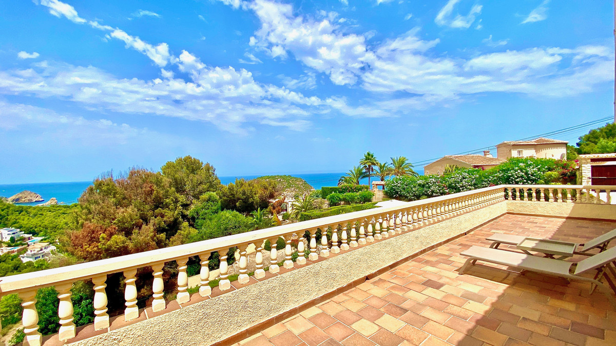 Villa for Sale in the magnificent area of Portichol with direct views of the Sea. This wonderful villa with recently renovated with a privileged location. It is located very close to Cala La Barraca, the main house is distributed over 2 floors and has three bedrooms with fitted wardrobes, two bathrooms, large living room and dining room with double height and kitchen. It also has a totally independent guest apartment with two bedrooms, a bathroom, kitchen and living room. The pool is oriented south and with very well maintained gardens, with many trees and nature. Ideal property to enjoy a wonderful holiday or second residence.