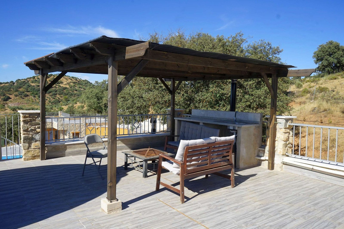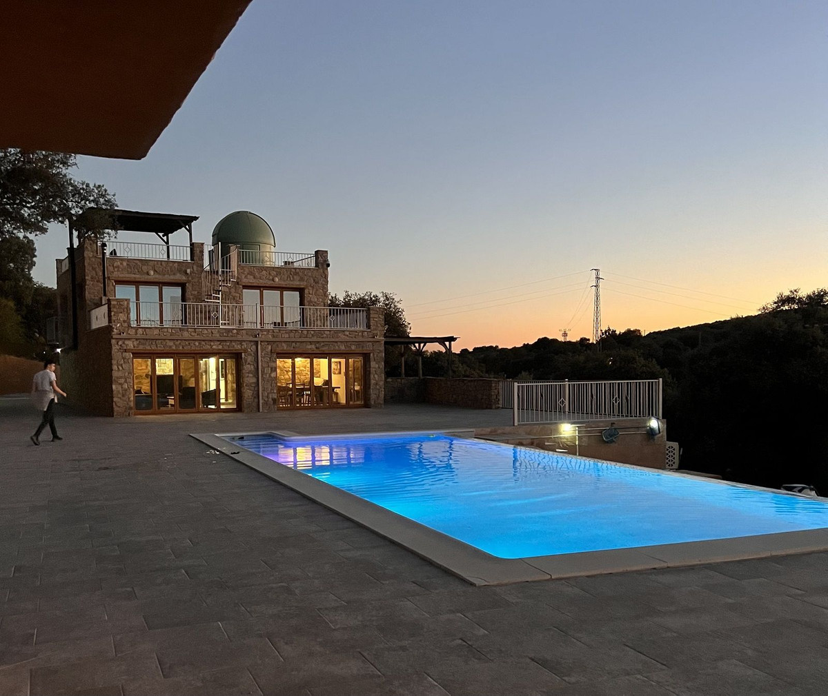 the main house has 4 bedrooms 3 bathrooms, kitchen, lounge diner, roof terrace, on the roof terrace you find a fully working planaterium and telescope which is incredible