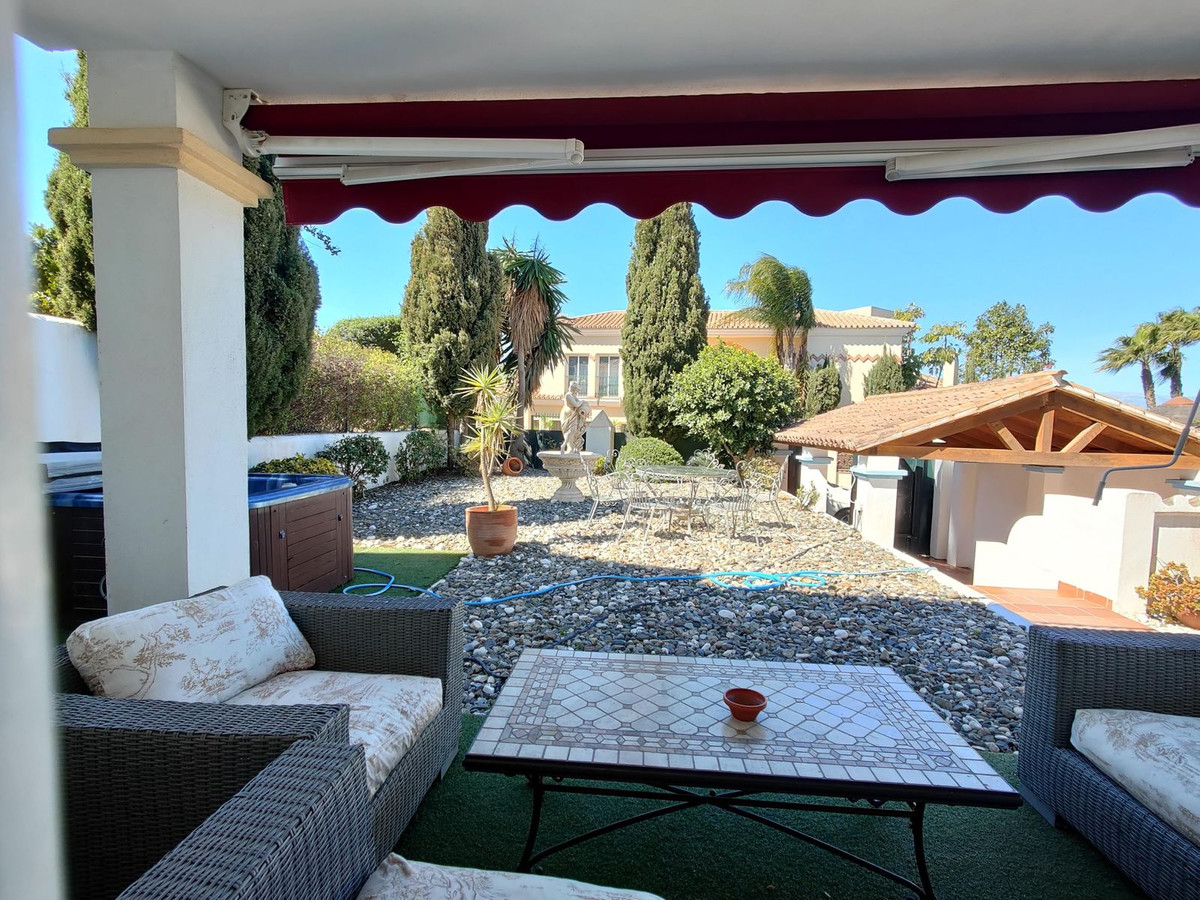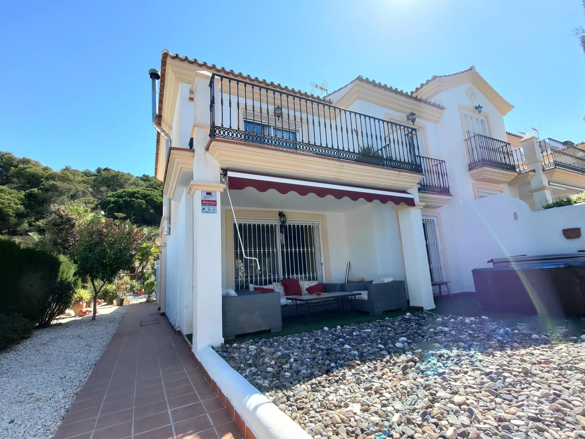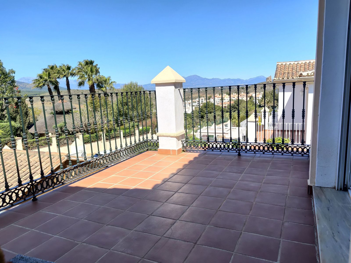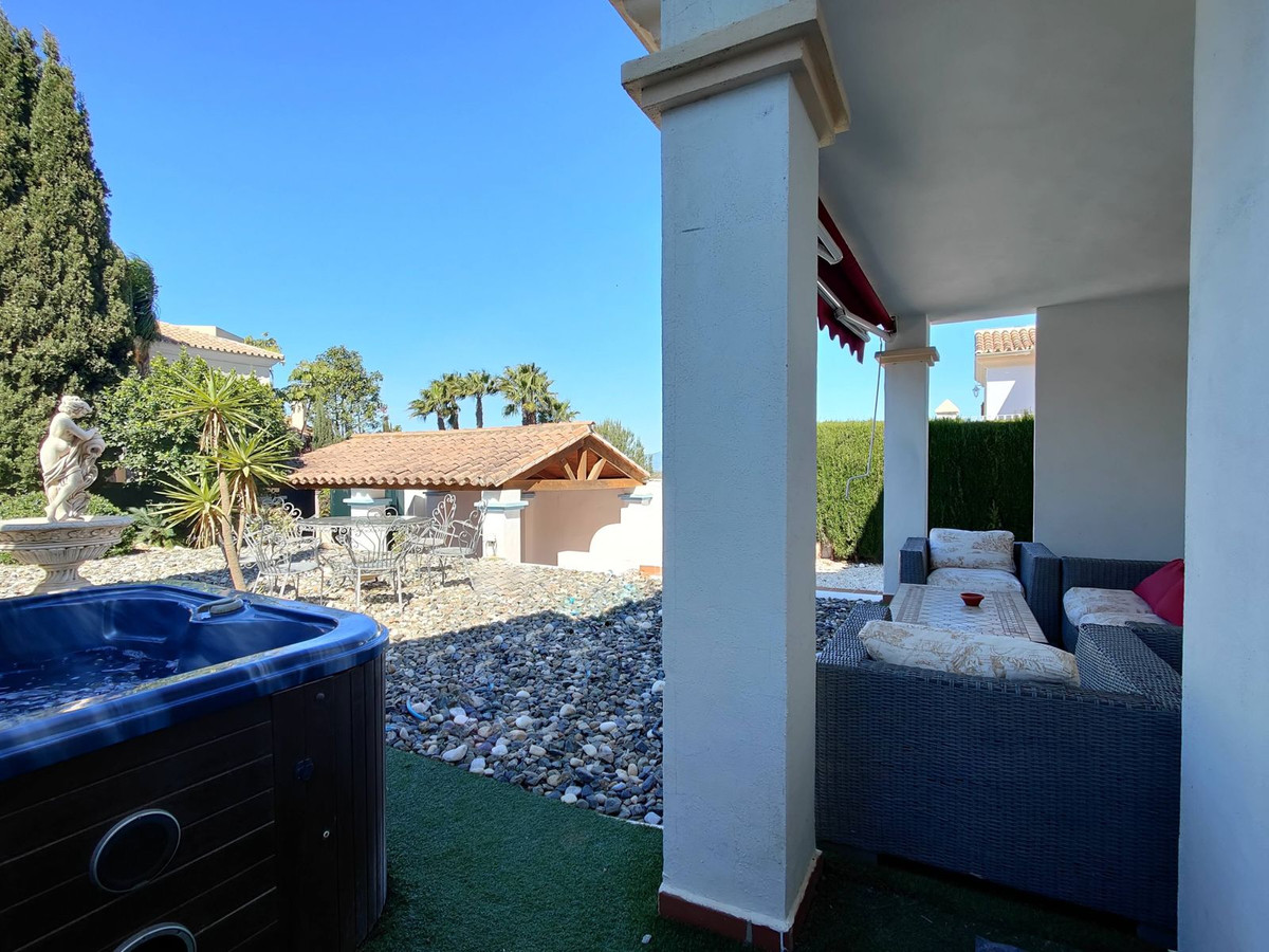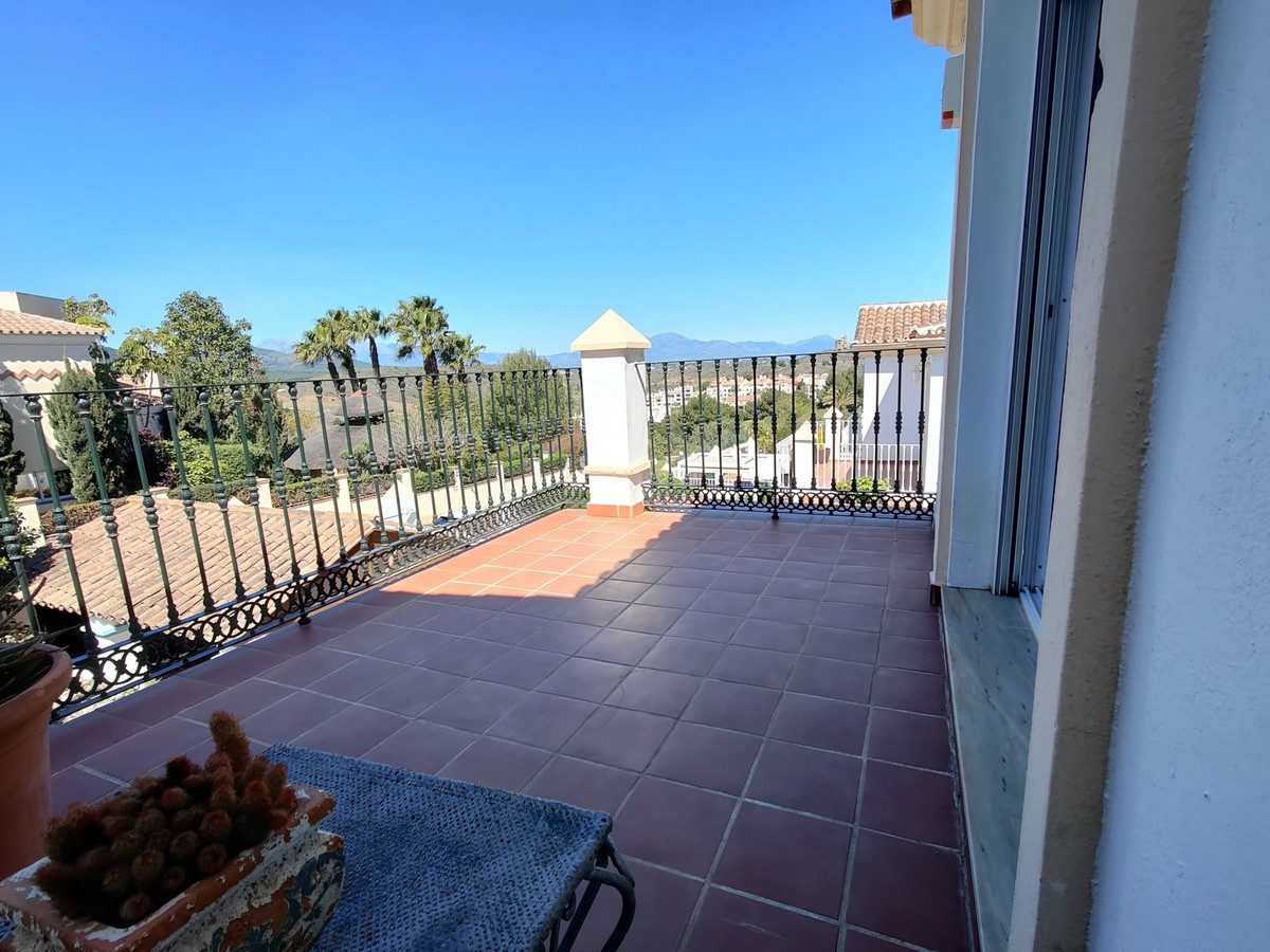 Semi-detached house in Alhaurín Golf urbanization, with beautiful panoramic views of the countryside. Main floor with: entrance hall, living-dining room with fireplace and access to a west-facing garden terrace with Jacuzzi, full bathroom with shower, large and fully equipped kitchen and access to a porch with barbecue and a rear garden with tropical plants, swimming pool and orientation East. Upper floor, has 3 large bedrooms, the master bedroom with terrace, beautiful views and bathroom en suite. Two large bedrooms and a bathroom with shower. The urbanization is residential, quiet, with a fantastic golf course and golf club with bar, restaurant, where you can enjoy beautiful views.
