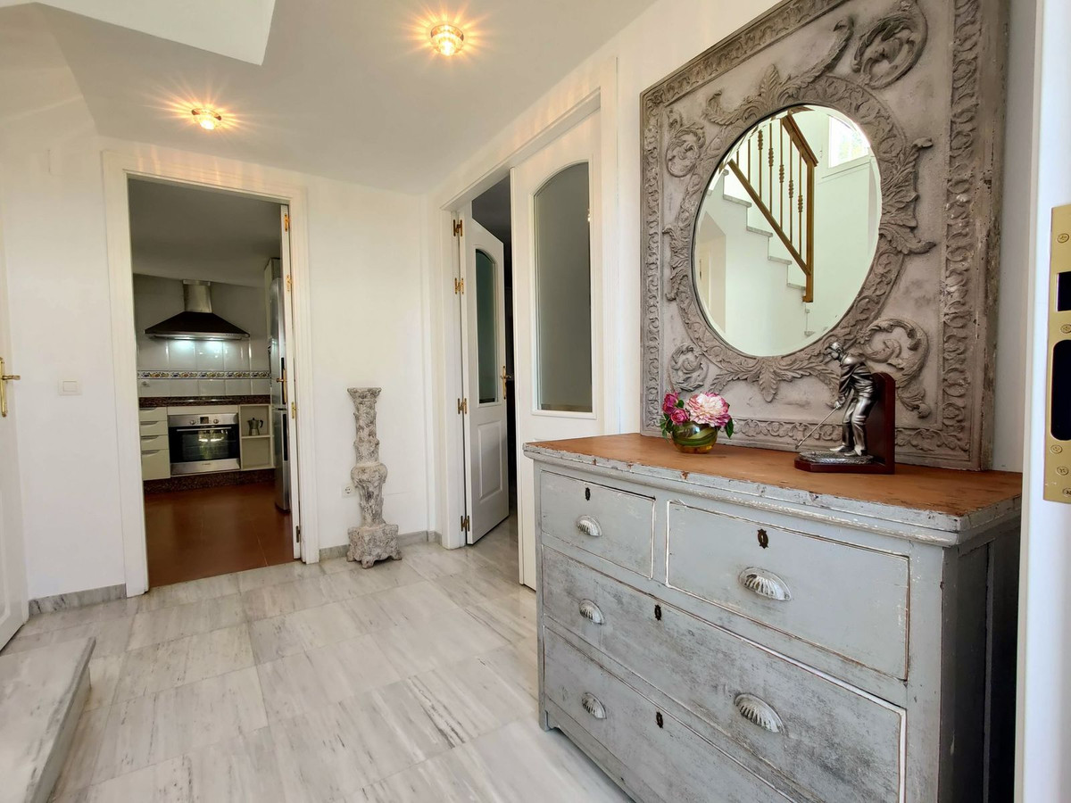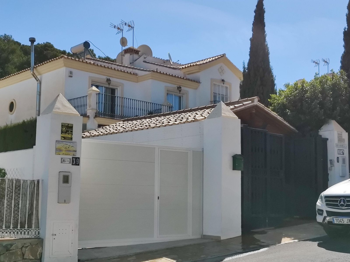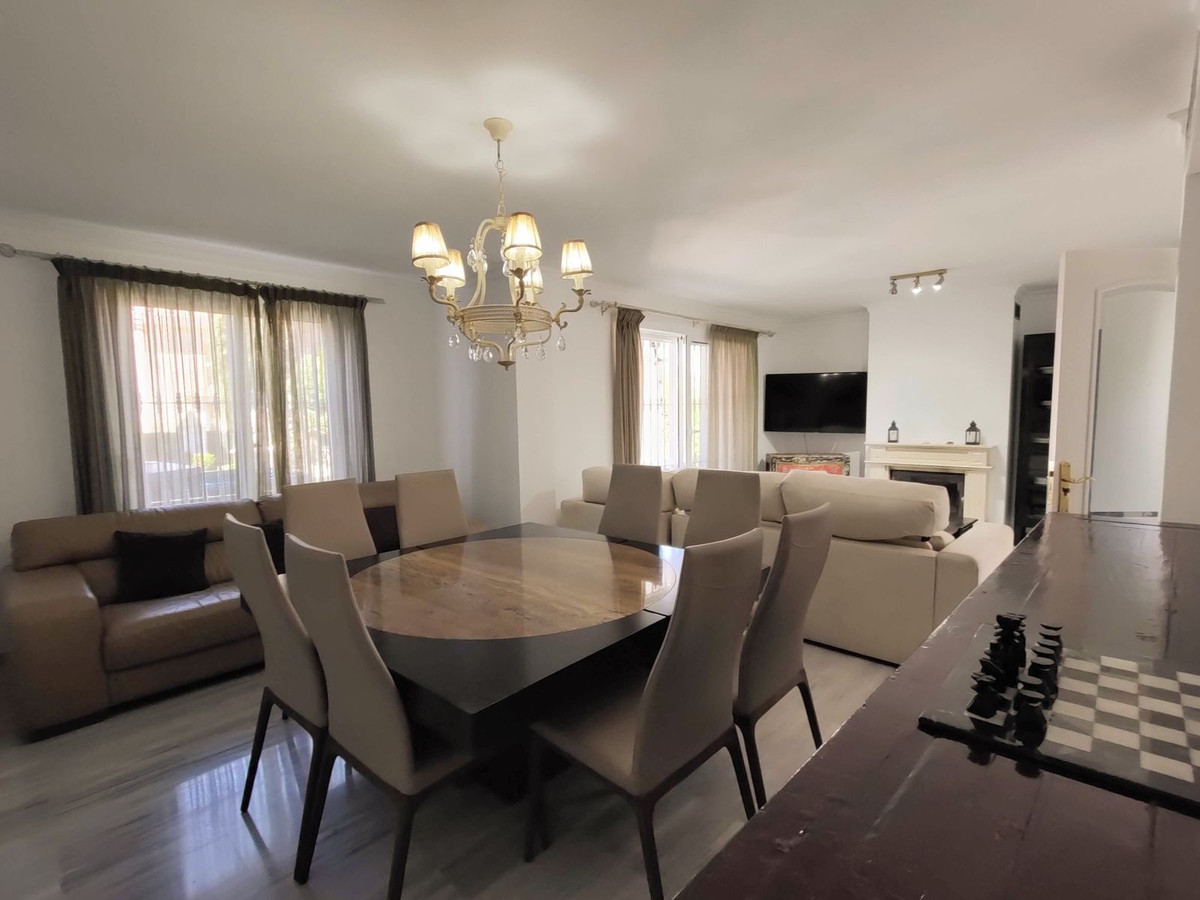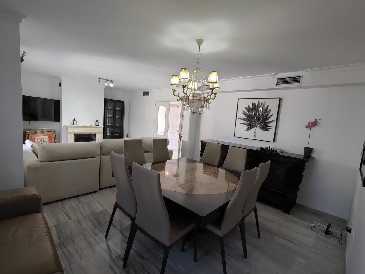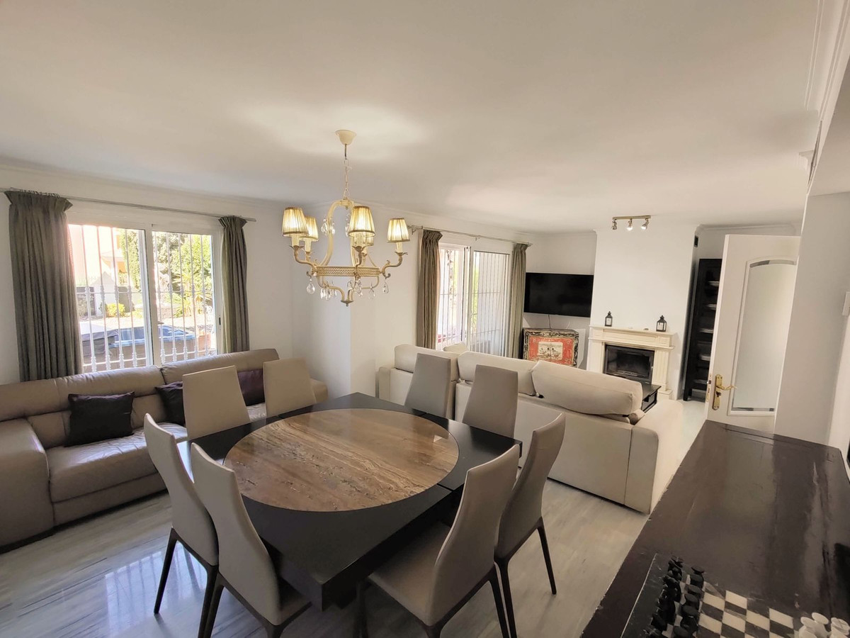 Semi-detached house in Alhaurín Golf urbanization, with beautiful panoramic views of the countryside. Main floor with: entrance hall, living-dining room with fireplace and access to a west-facing garden terrace with Jacuzzi, full bathroom with shower, large and fully equipped kitchen and access to a porch with barbecue and a rear garden with tropical plants, swimming pool and orientation East. Upper floor, has 3 large bedrooms, the master bedroom with terrace, beautiful views and bathroom en suite. Two large bedrooms and a bathroom with shower. The urbanization is residential, quiet, with a fantastic golf course and golf club with bar, restaurant, where you can enjoy beautiful views.