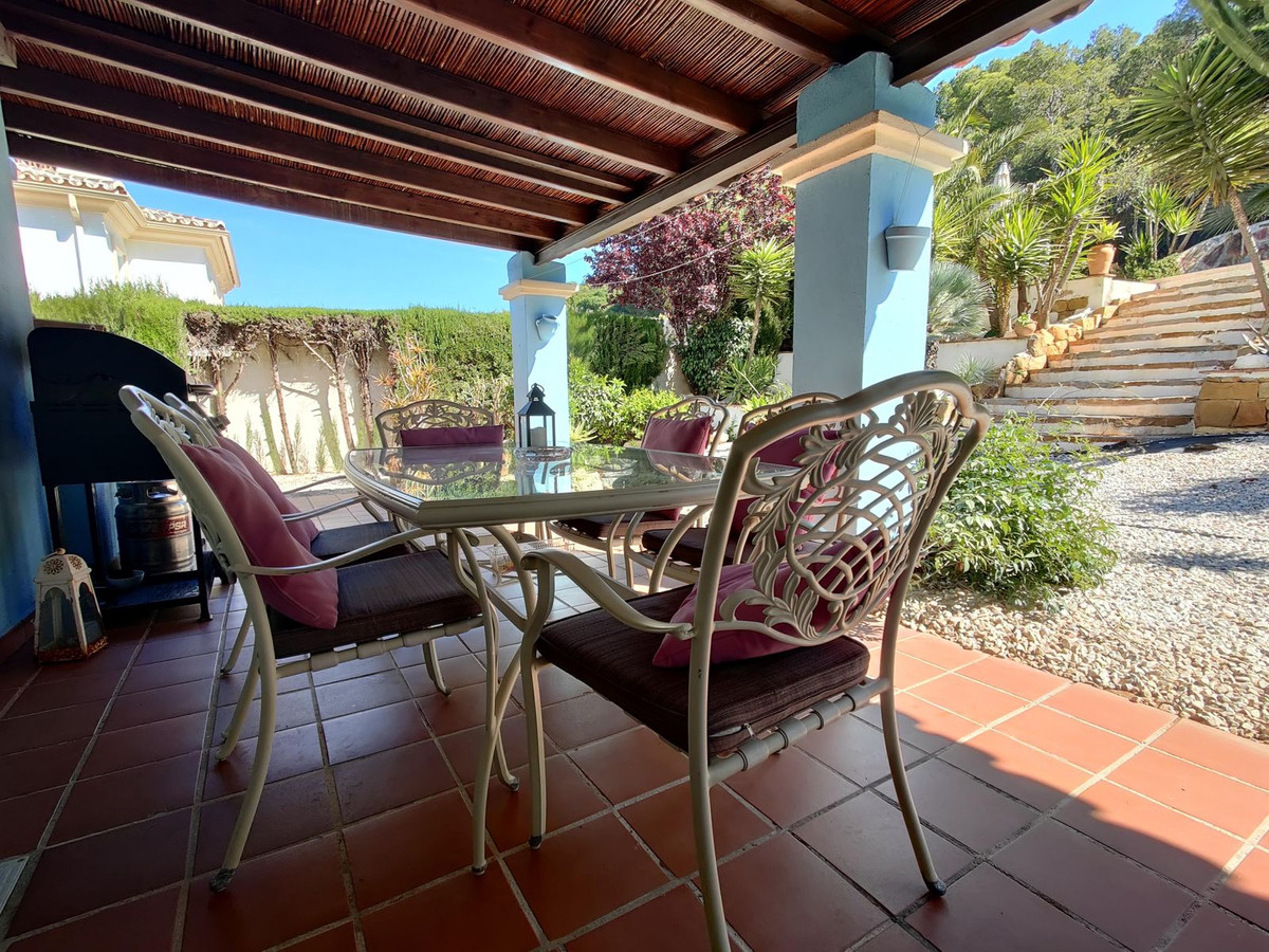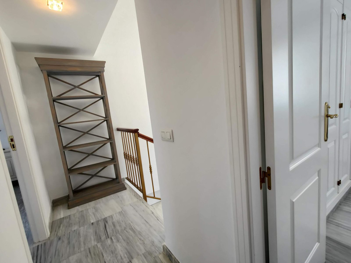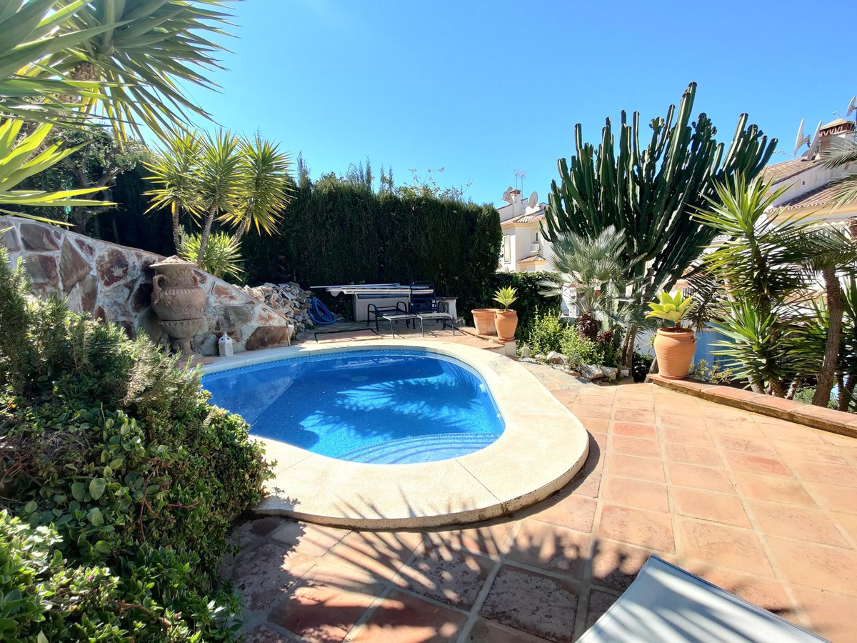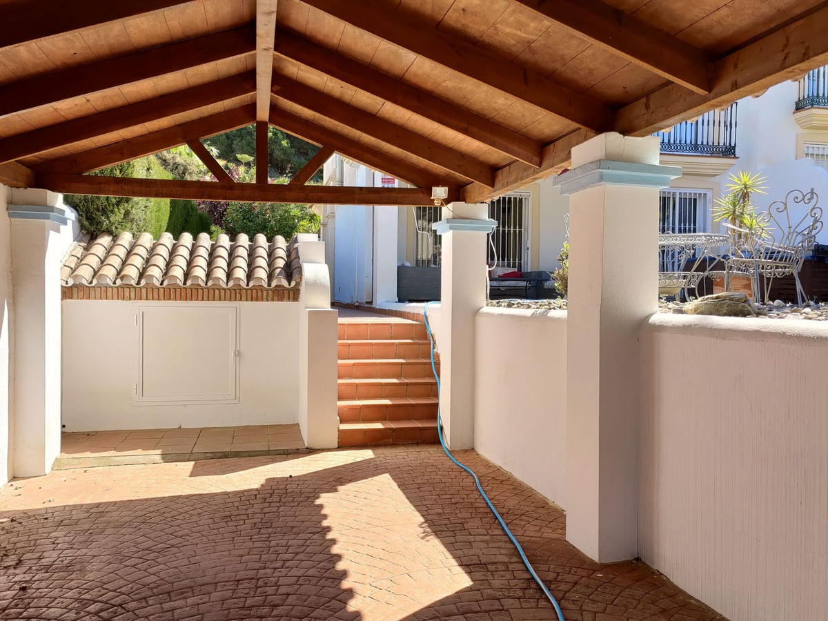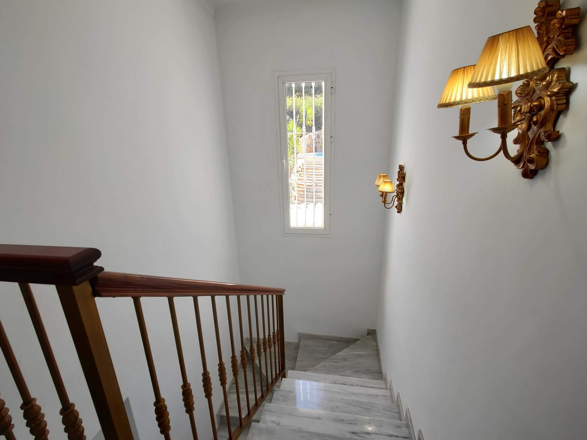 Semi-detached house in Alhaurín Golf urbanization, with beautiful panoramic views of the countryside. Main floor with: entrance hall, living-dining room with fireplace and access to a west-facing garden terrace with Jacuzzi, full bathroom with shower, large and fully equipped kitchen and access to a porch with barbecue and a rear garden with tropical plants, swimming pool and orientation East. Upper floor, has 3 large bedrooms, the master bedroom with terrace, beautiful views and bathroom en suite. Two large bedrooms and a bathroom with shower. The urbanization is residential, quiet, with a fantastic golf course and golf club with bar, restaurant, where you can enjoy beautiful views.