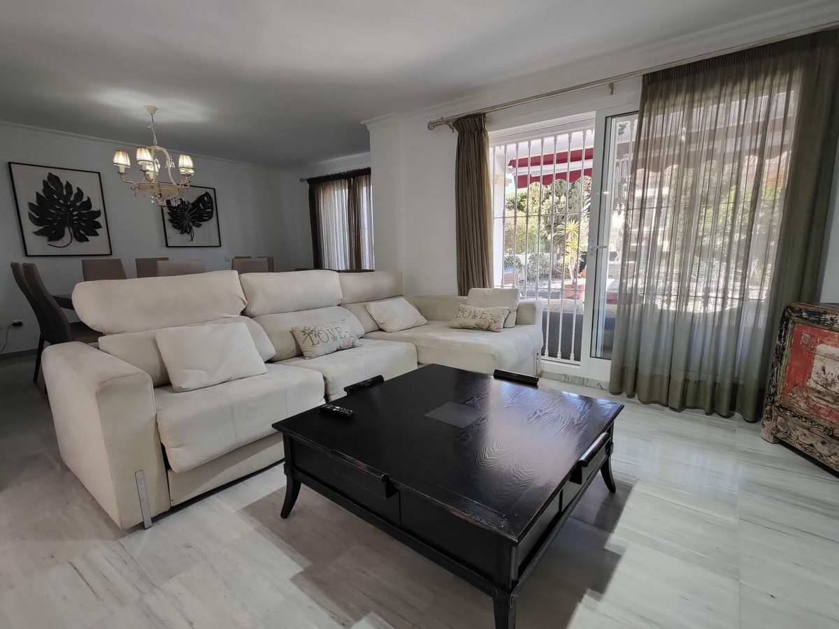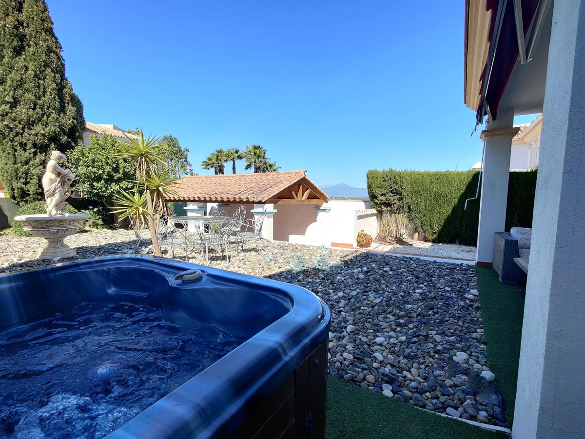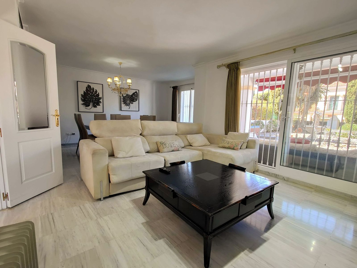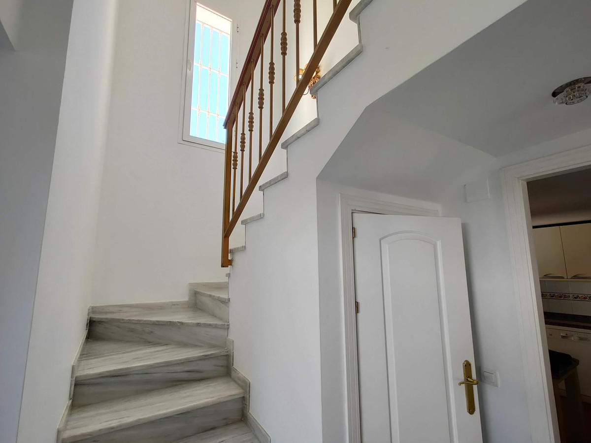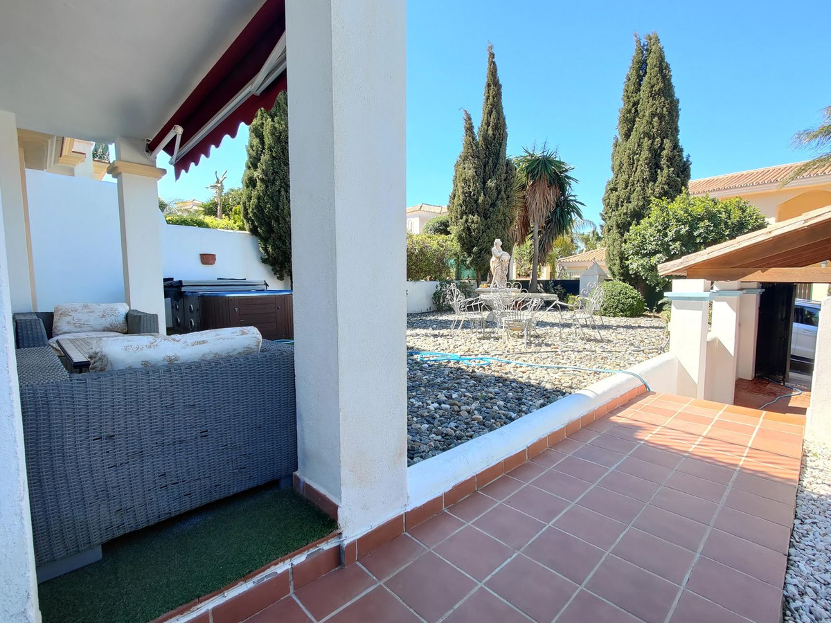 Semi-detached house in Alhaurín Golf urbanization, with beautiful panoramic views of the countryside. Main floor with: entrance hall, living-dining room with fireplace and access to a west-facing garden terrace with Jacuzzi, full bathroom with shower, large and fully equipped kitchen and access to a porch with barbecue and a rear garden with tropical plants, swimming pool and orientation East. Upper floor, has 3 large bedrooms, the master bedroom with terrace, beautiful views and bathroom en suite. Two large bedrooms and a bathroom with shower. The urbanization is residential, quiet, with a fantastic golf course and golf club with bar, restaurant, where you can enjoy beautiful views.