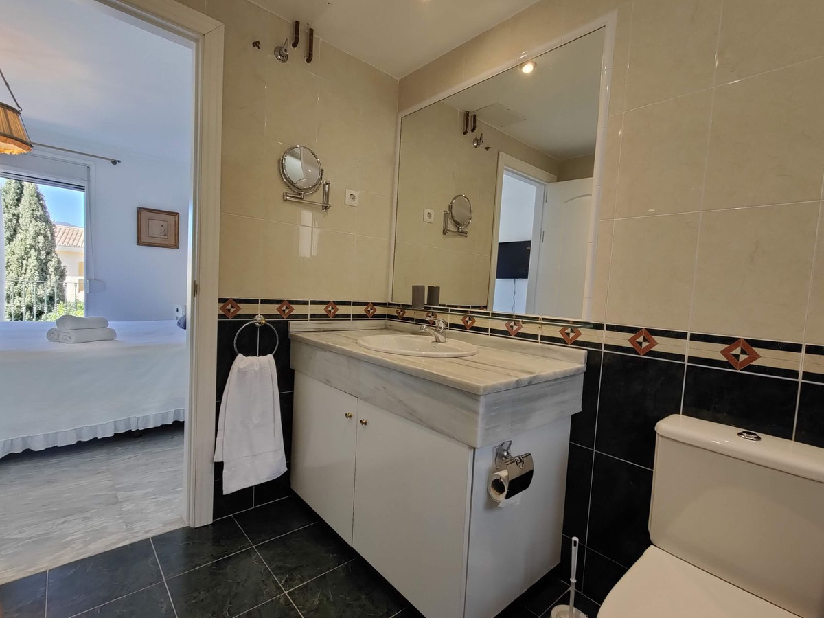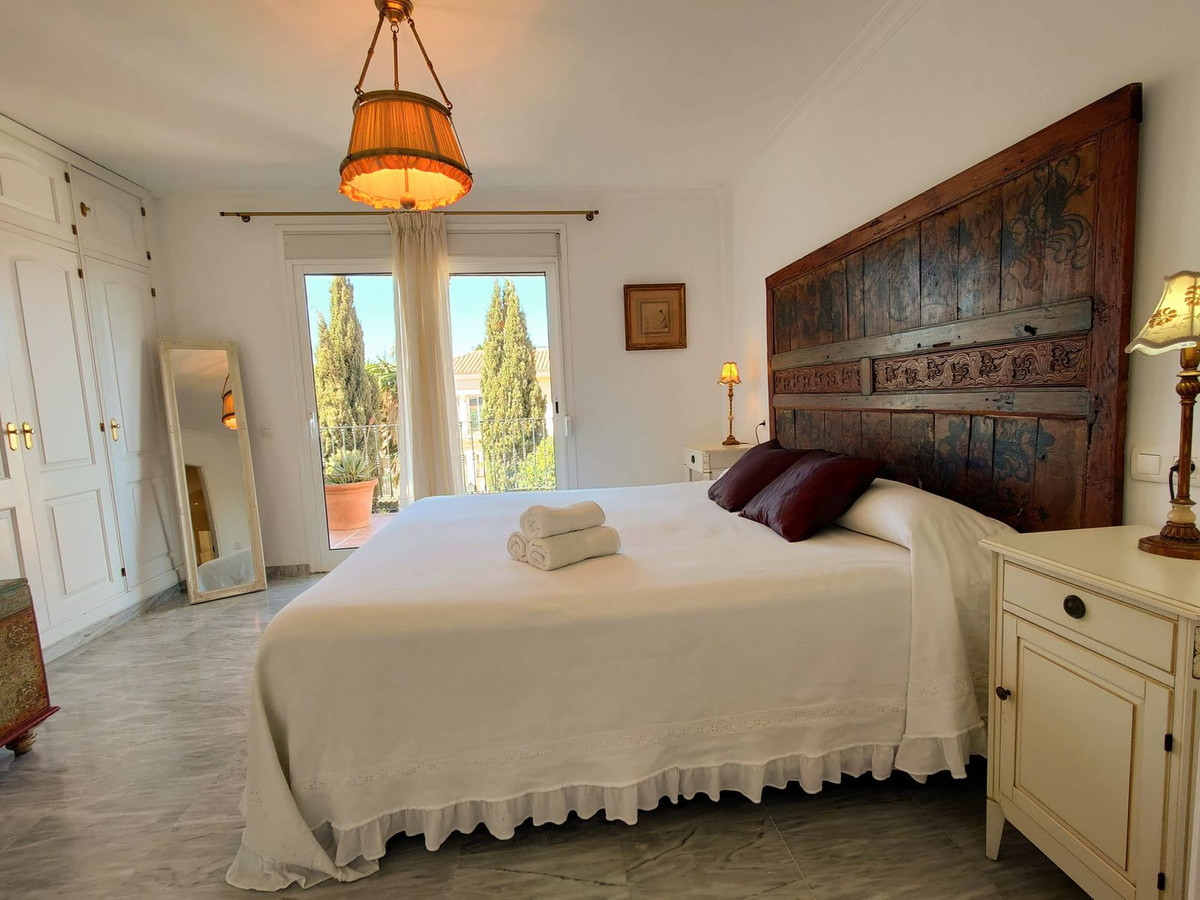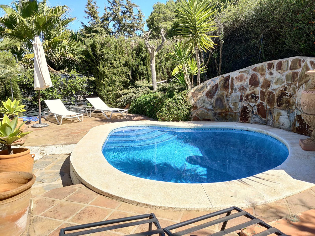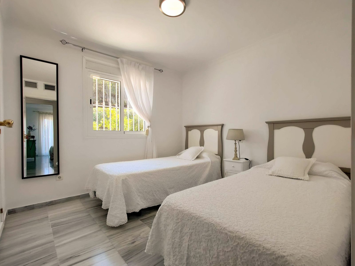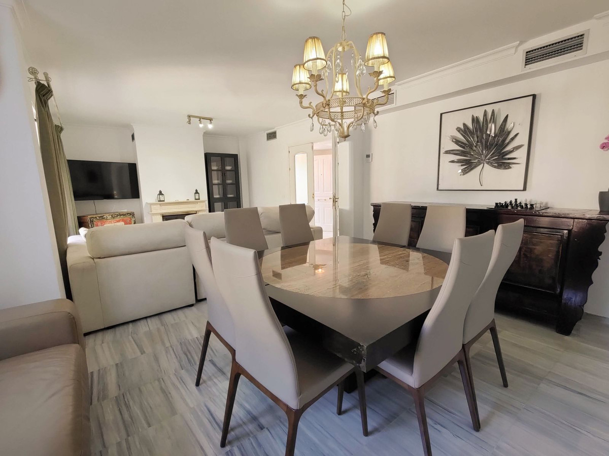 Semi-detached house in Alhaurín Golf urbanization, with beautiful panoramic views of the countryside. Main floor with: entrance hall, living-dining room with fireplace and access to a west-facing garden terrace with Jacuzzi, full bathroom with shower, large and fully equipped kitchen and access to a porch with barbecue and a rear garden with tropical plants, swimming pool and orientation East. Upper floor, has 3 large bedrooms, the master bedroom with terrace, beautiful views and bathroom en suite. Two large bedrooms and a bathroom with shower. The urbanization is residential, quiet, with a fantastic golf course and golf club with bar, restaurant, where you can enjoy beautiful views.