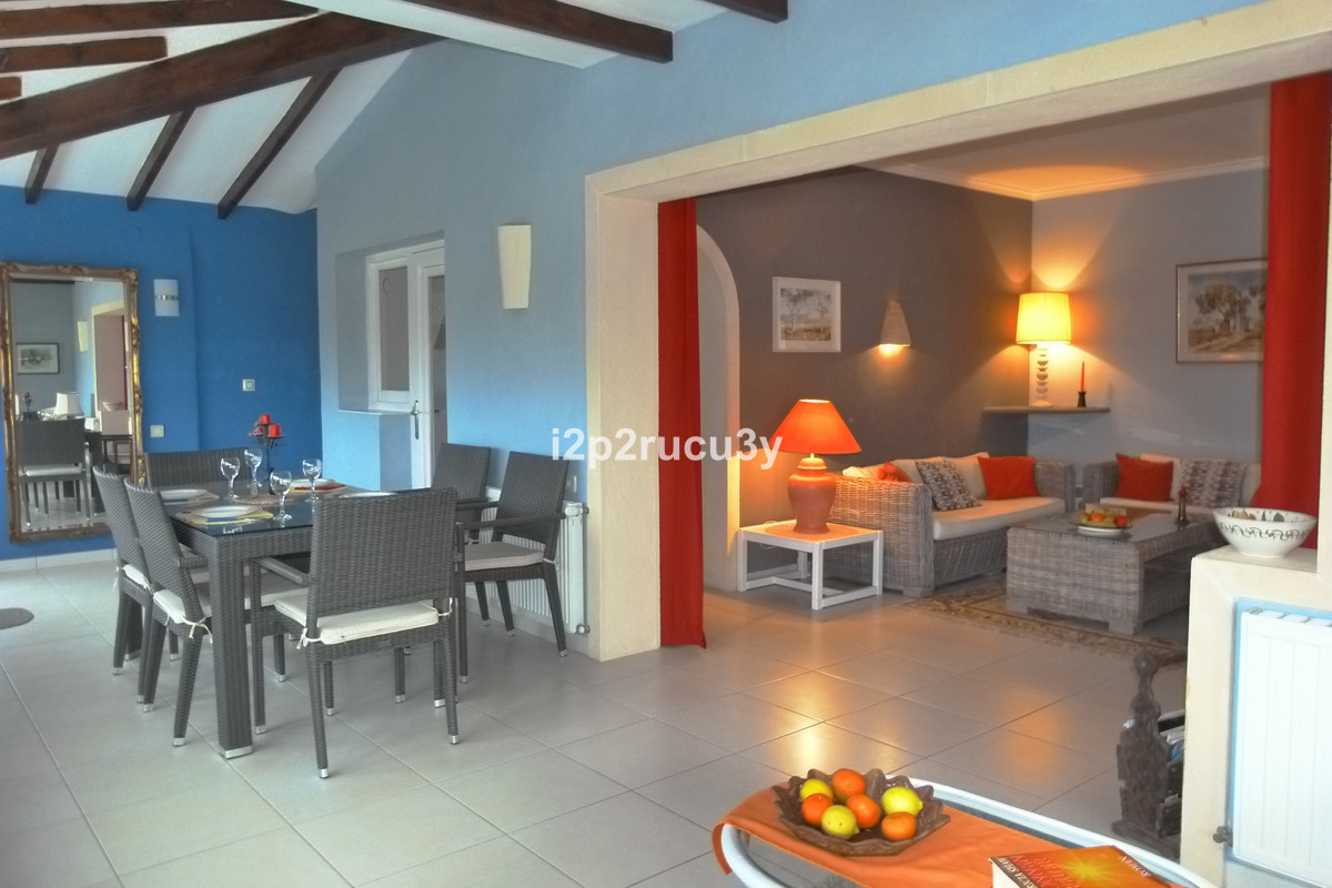 Garage for 1 car, carport for 2 cars, totally parkingspace for 7 cars on the property, central heating / partially underfloor heating on gas, air conditioning, log burner etc.