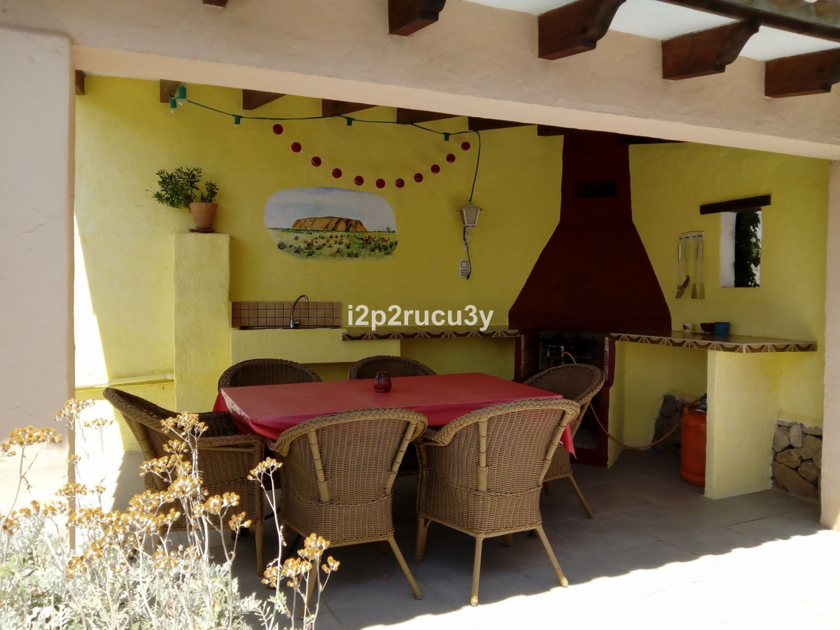 The property has 3 levels.  The lower part has 1 bedroom, 1 bathroom, the pool with garden, terrace and bbq area.  Via a few steps, we have access to the main living floor with a large glazed naya with lovely views over the town and the sea.  There is a spacious living-and dining room, open kitchen, a nice fireplace, 2 bedrooms and 2 bathrooms.  With an interior and exterior staircase you can reach the top floor with a wonderful living room with a terrace and with one of the most spectacular sea and panorama views in Moraira.  In this higher part of the house is also a fully equipped kitchen, 1 bedroom with bathroom and a hobbyroom.