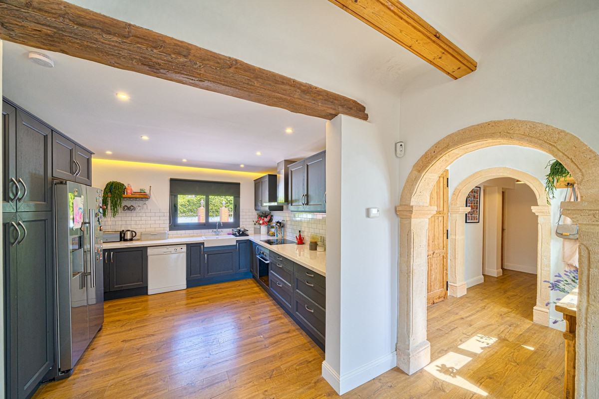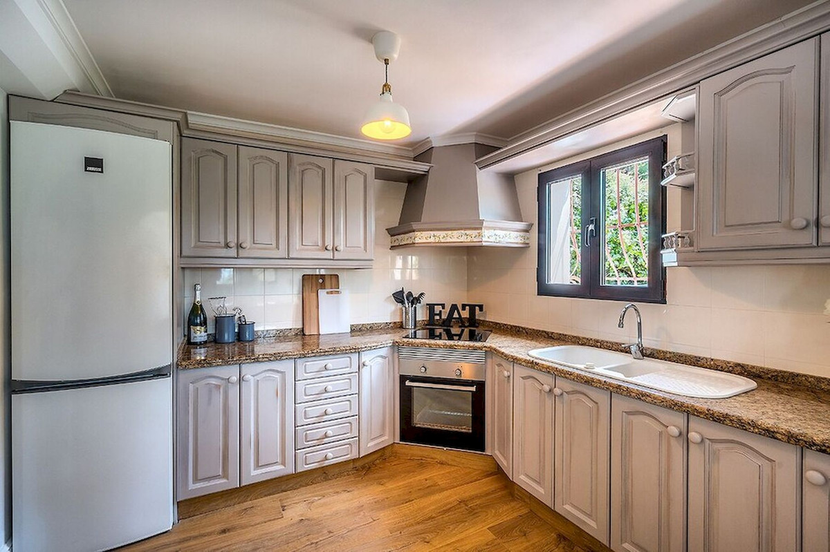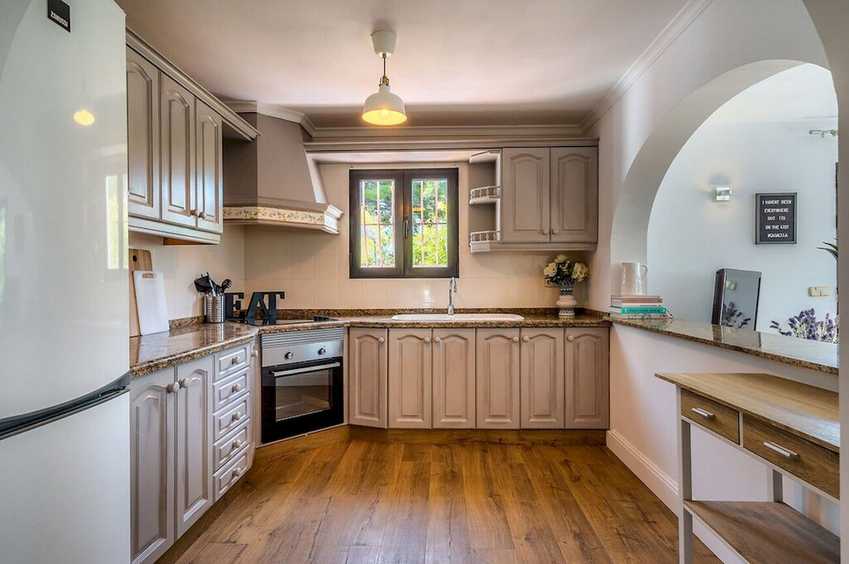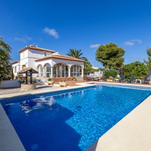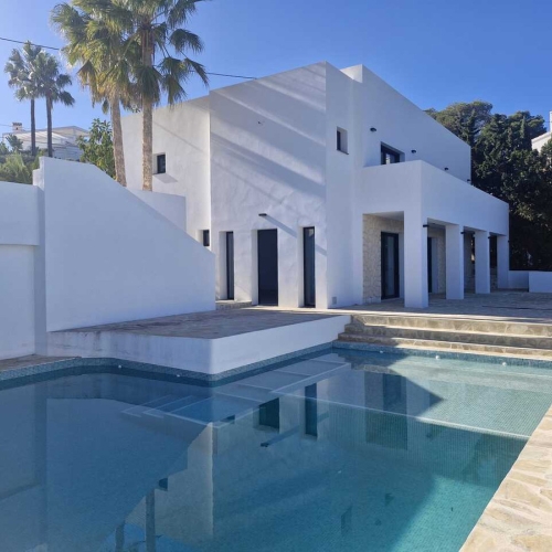 This beautiful property located on the Montgo of Javea has been renovated to a high standard and offers ample space combined with stunning views. The main floor has two large bedrooms, both with pool views. A family bathroom that has a newly fitted bathtub which can easily be removed as the walk-in shower has been preserved underneath. The large and bright kitchen has views up to the magnificent Montgo mountain and has an additional utility room which has ample storage and a fitted washer/dryer. The spacious dining room has a newly built shelving unit with extra storage and follows round into the open-plan living room with fireplace and views of the valley and garden. The stairs give access to the main bedroom and ensuite with a private terrace that also boasts spectacular views. Off of the living room there is a children's play room and large office/sun room that can be repurposed in many ways. The main living area is extremely bright with lots of natural light due to the internal patio that can be accessed via two separate doors. There is also an additional, three bedroom apartment below with independent access and a large bathroom with a stand alone bath and walk in shower. A large living/dining/kitchen area finishes the apartment and the house also has a ‘Tourist License' which allows for the house to be rented and has been successfully rented as a holiday home with great success. There are also various store rooms that can be repurposed also and have additional access from outside. The garden is a huge plot of 2,495m2 with mature borders and a large amount of grass that is maintained through an automated irrigation system with water from a well. The large pool is looked over by the stunning Montgo mountain and is an oasis of calm in the summer months. The garden also has two, large decked areas for seating and a large double car port. The property is accessed via an electric gate and the house also has solar panels which keep the electricity costs to a minimum. The property also has underfloor heating on all levels as well as newly fitted, aluminium, double-glazed windows on the main and top floors. All bedrooms and the main living areas have newly fitted air-conditioning units that can be controlled via an app. There is also fibre optic internet connection in the area and both the house and gardens are very private and peaceful.