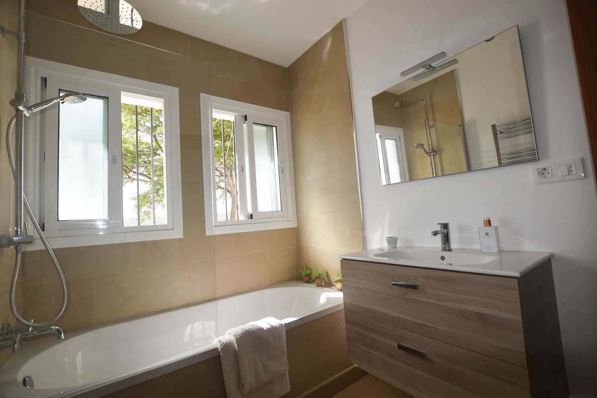 The villa offers 4 bedrooms with built-in wardrobes, 2 newly renovated bathrooms with underfloor heating. The living room has an open floor plan and glass doors that open up to the terrace.