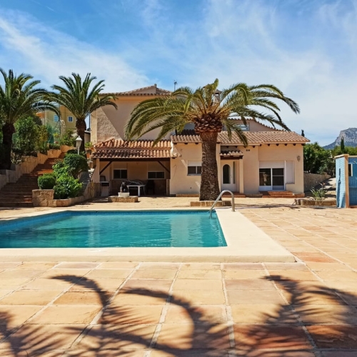 Suitable for double occupancy or rentalLarge outdoor area and swimming pool on the same level as the houseSolid constructionSea viewA villa with a well-thought-out layout, lots of space, and sea view for sale in Calpe.