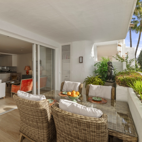 Magnificent newly renovated 3-room apartment on two levels. Located in a very safe and established urbanization in Las Lomas del Marbella Club, Coto real ll.